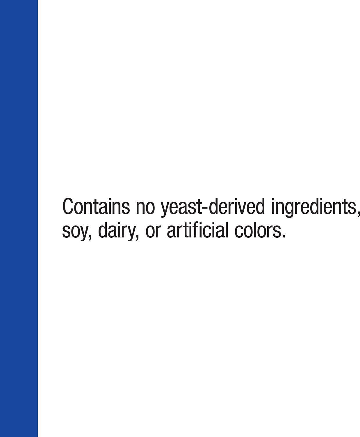 - Vegetarian. No yeast-derived ingredients, soy, dairy, or artificial colors.