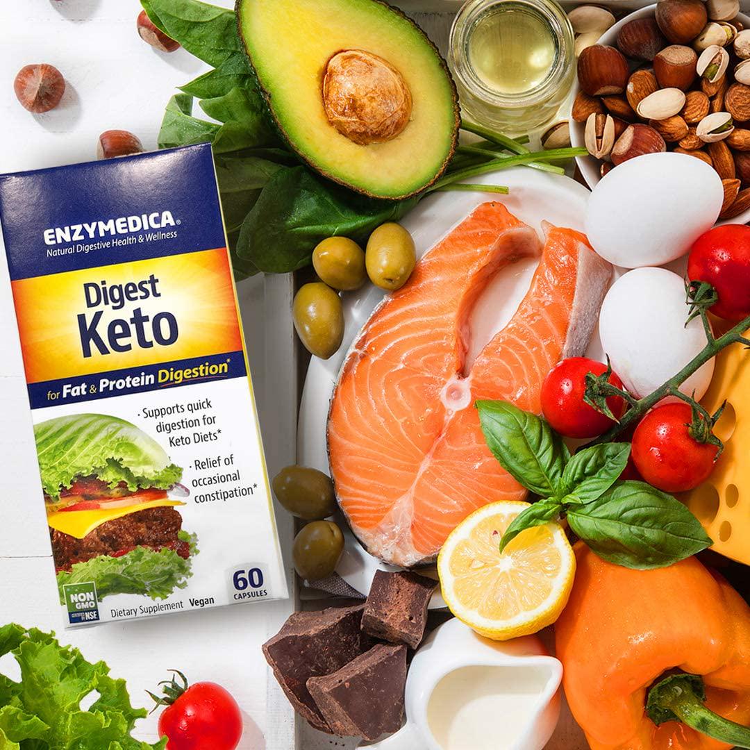 Enzymedica, Digest Keto, Digestive Aid for Relief from Occasional Constipation, 2 Billion CFU Probiotic, Vegan, Gluten Free, Non-GMO, 60 Capsules (30 Servings)
