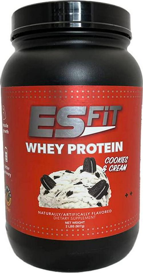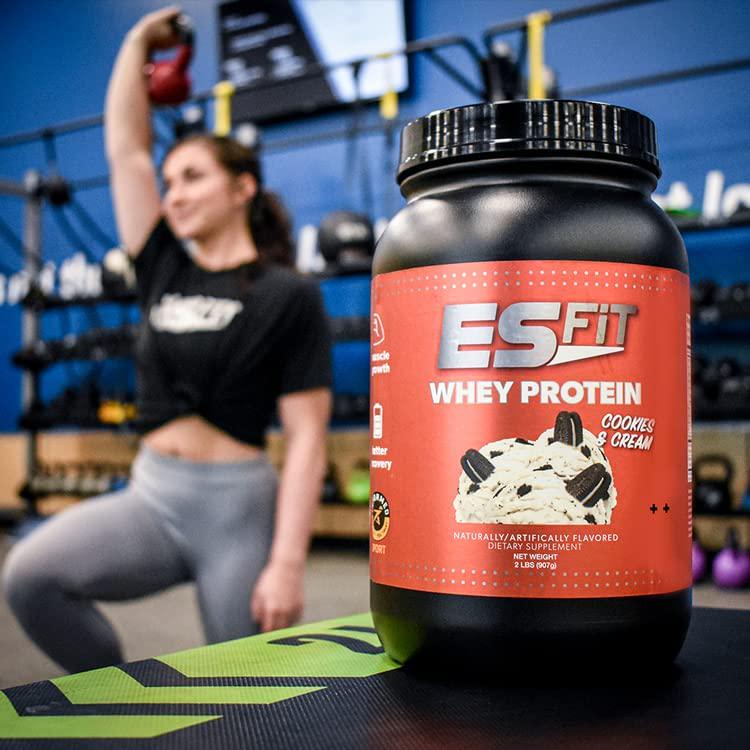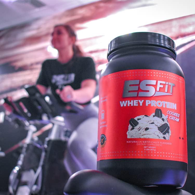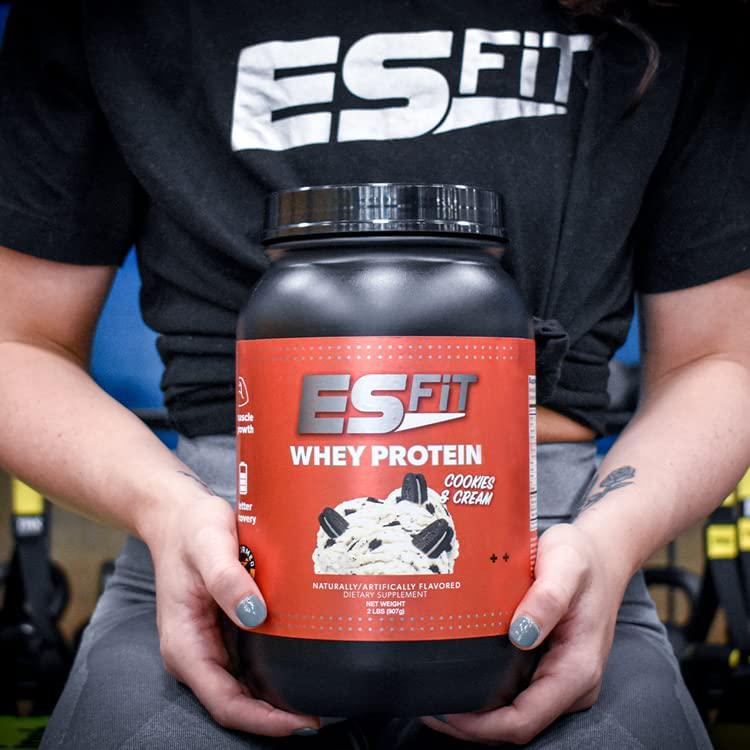 ES Fit Whey Protein Powder - Post Workout for Muscle Recovery, Non-GMO, 3rd Party Tested, Cookies and Cream, 2 Pounds