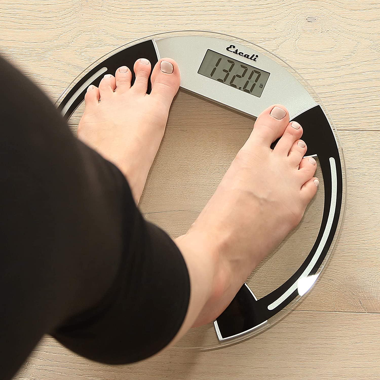 Escali Digital Glass Bath Scale for Body Weight, Bathroom Body Scale, High Capacity of 400 lb, Battery Included, Clear Round Platform