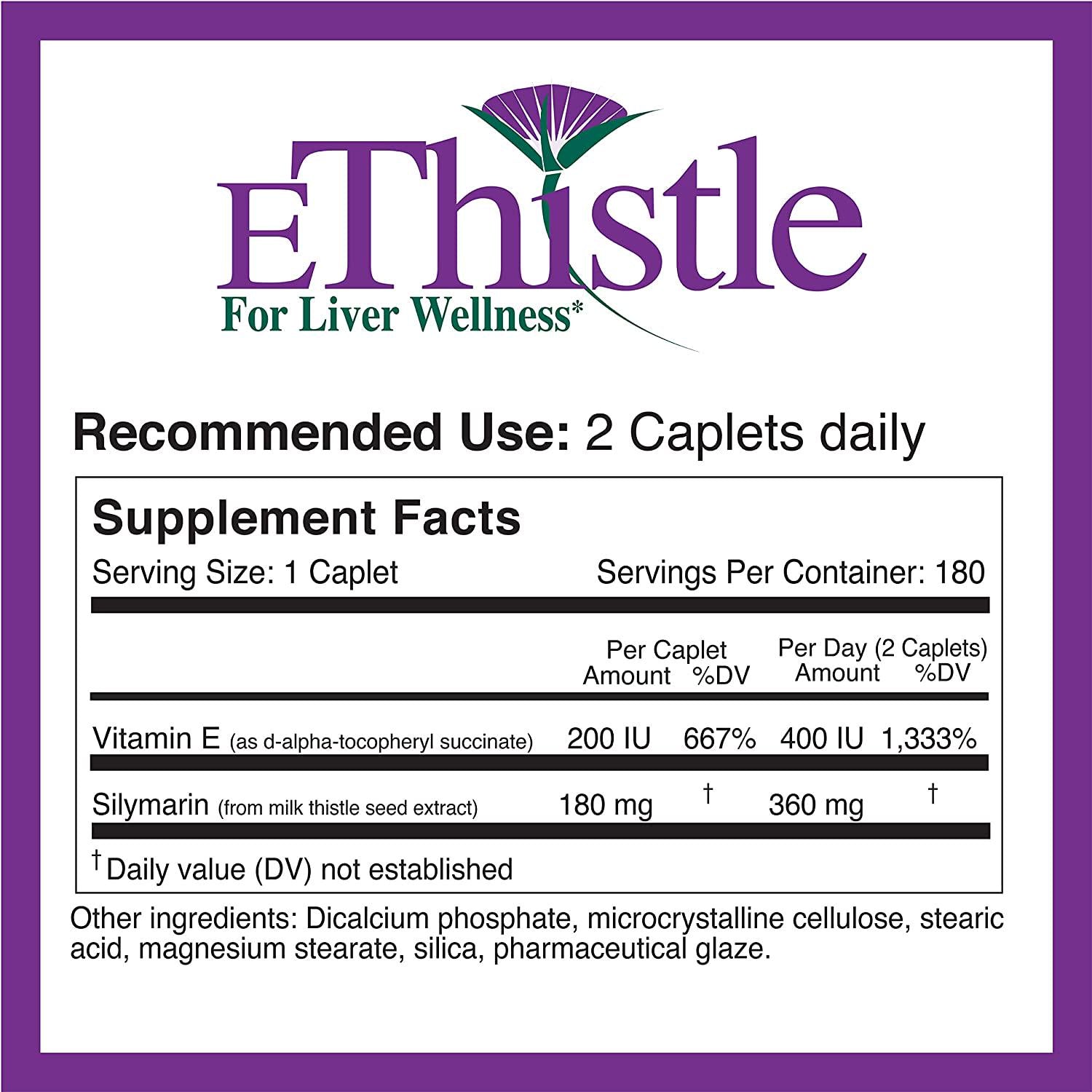 - HEALTHY DAILY DOSE - Take two caplets of EThistle a day with a meal to get optimal liver health support; Each bottle contains 180 caplets for three full months of daily dosage support