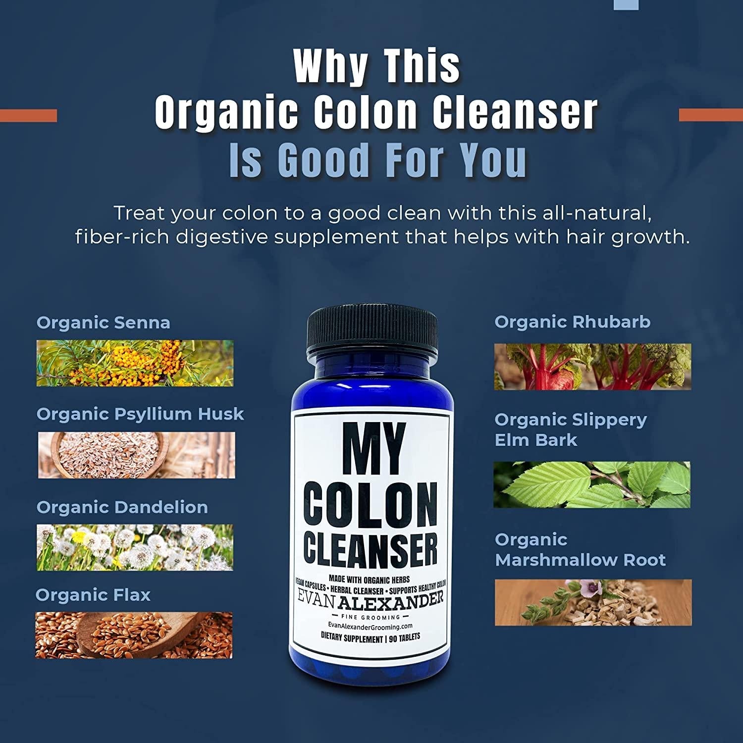 Evan Alexander Grooming My Colon Cleanser - Colon Cleanse with Organic Herbs - Vegan Detox Cleanse - All-Natural Colon Detox with Senna, Psyllium Husk, Dandelion, Flax Seed and Rhubarb - 30 Tablets