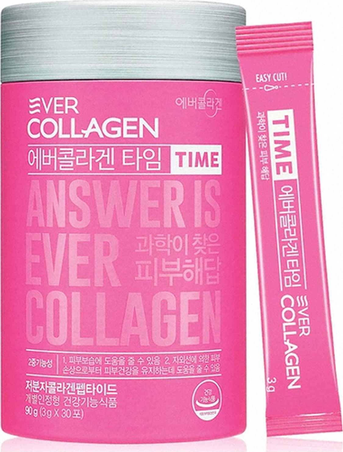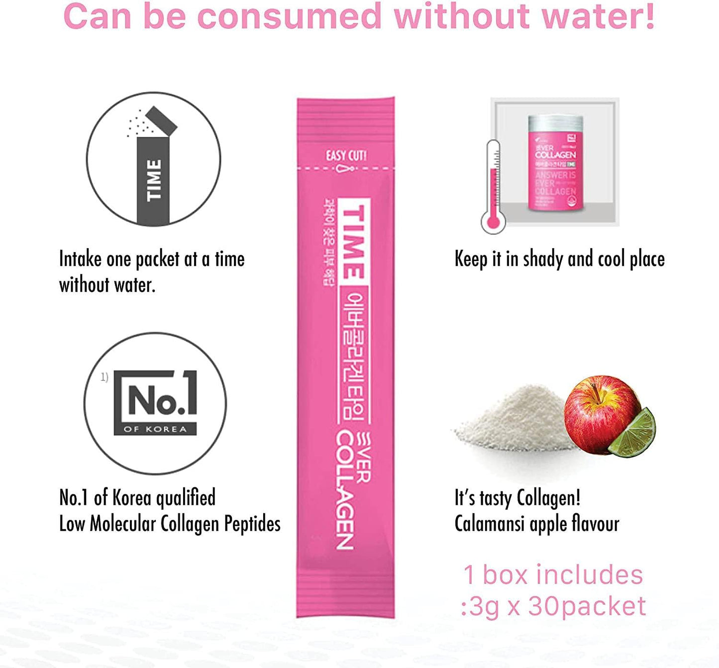 EVER COLLAGEN TIME Collagen Powder, Low Molecular Collagen Peptides Powder Stick Supplement - 30 Ct - Easy to Take Without Water, Collagen Powder for Women