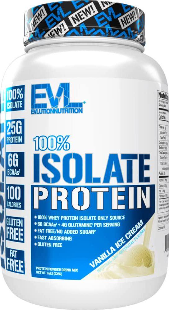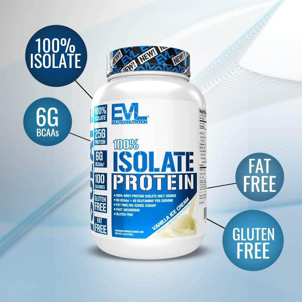 Evlution Nutrition 100% Isolate, Whey Isolate Protein Powder, 25 G of Fast Absorbing Protein, No Sugar Added, Low-Carb, Gluten-Free (Vanilla Ice Cream, 1.6 LB)