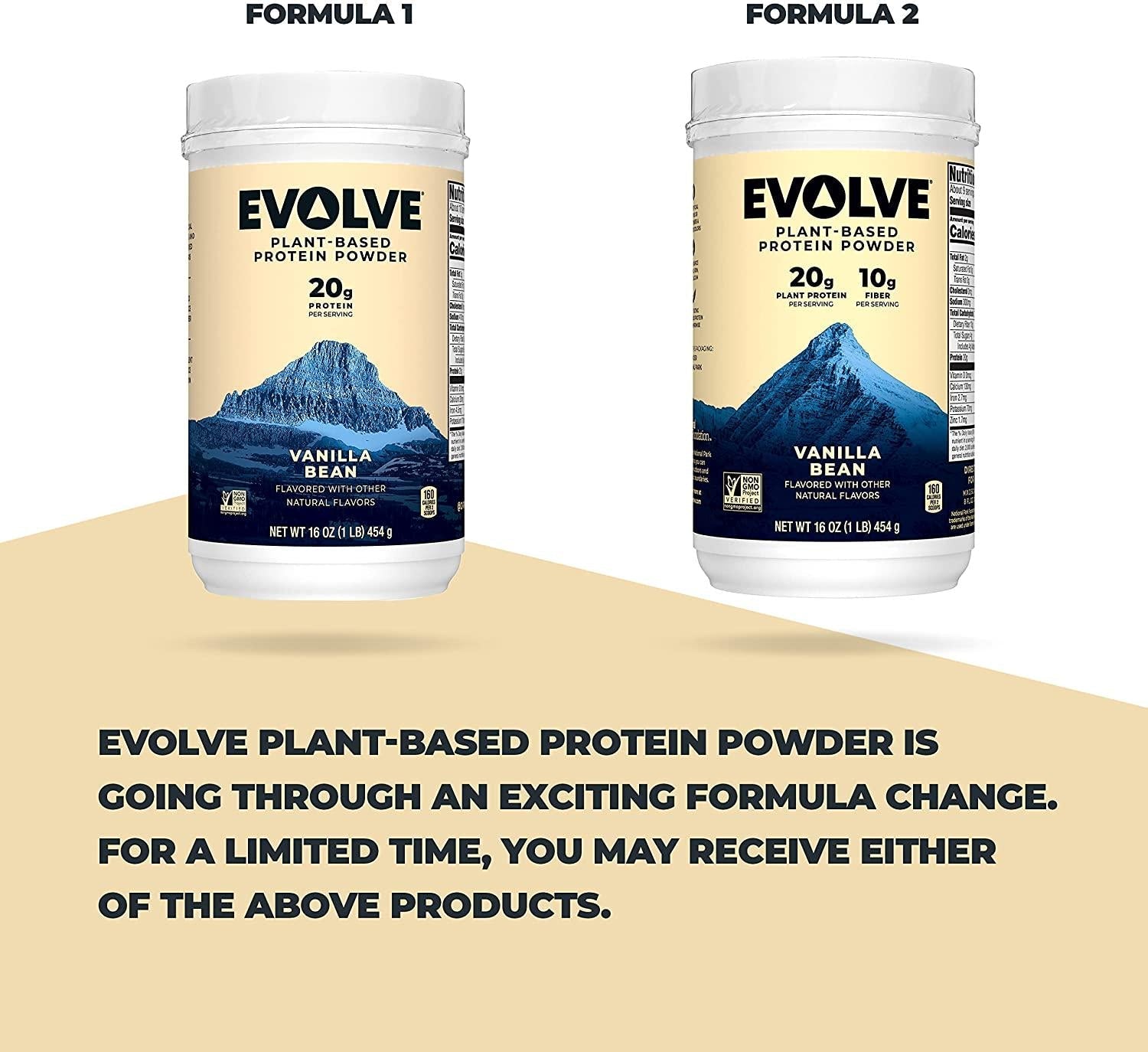 20g protein, evolve protein powder, ideal vanilla, non-gmo, plant-based, usa, vegan