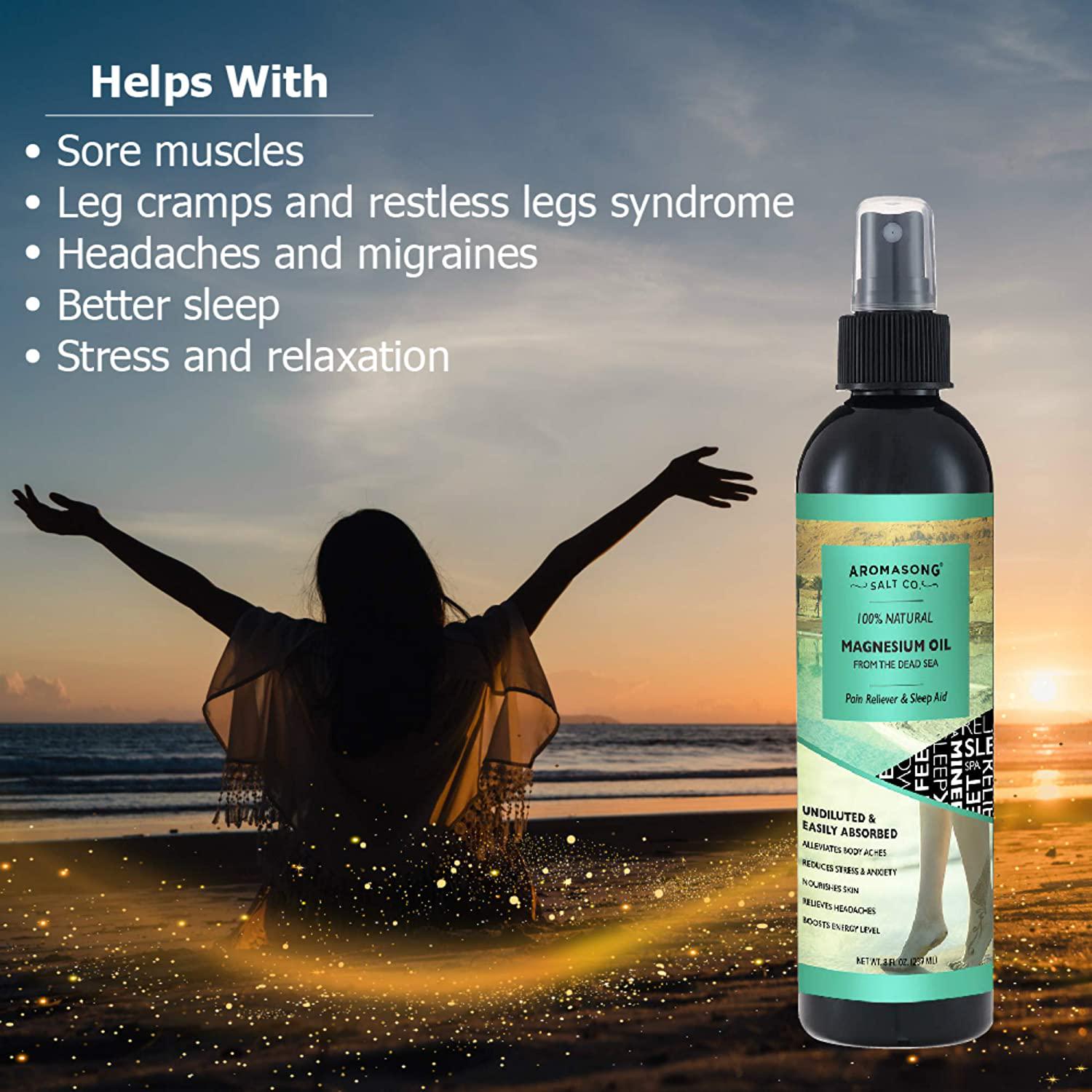 - RELIEVES BODY ACHES & PAIN - Are you struggling with Stress, leg cramps, hip pains, or restless legs syndrome ? Our Organic magnesium topical spray treatment from Pure Dead Sea Source provides quick relief from muscle aches and joint soreness.