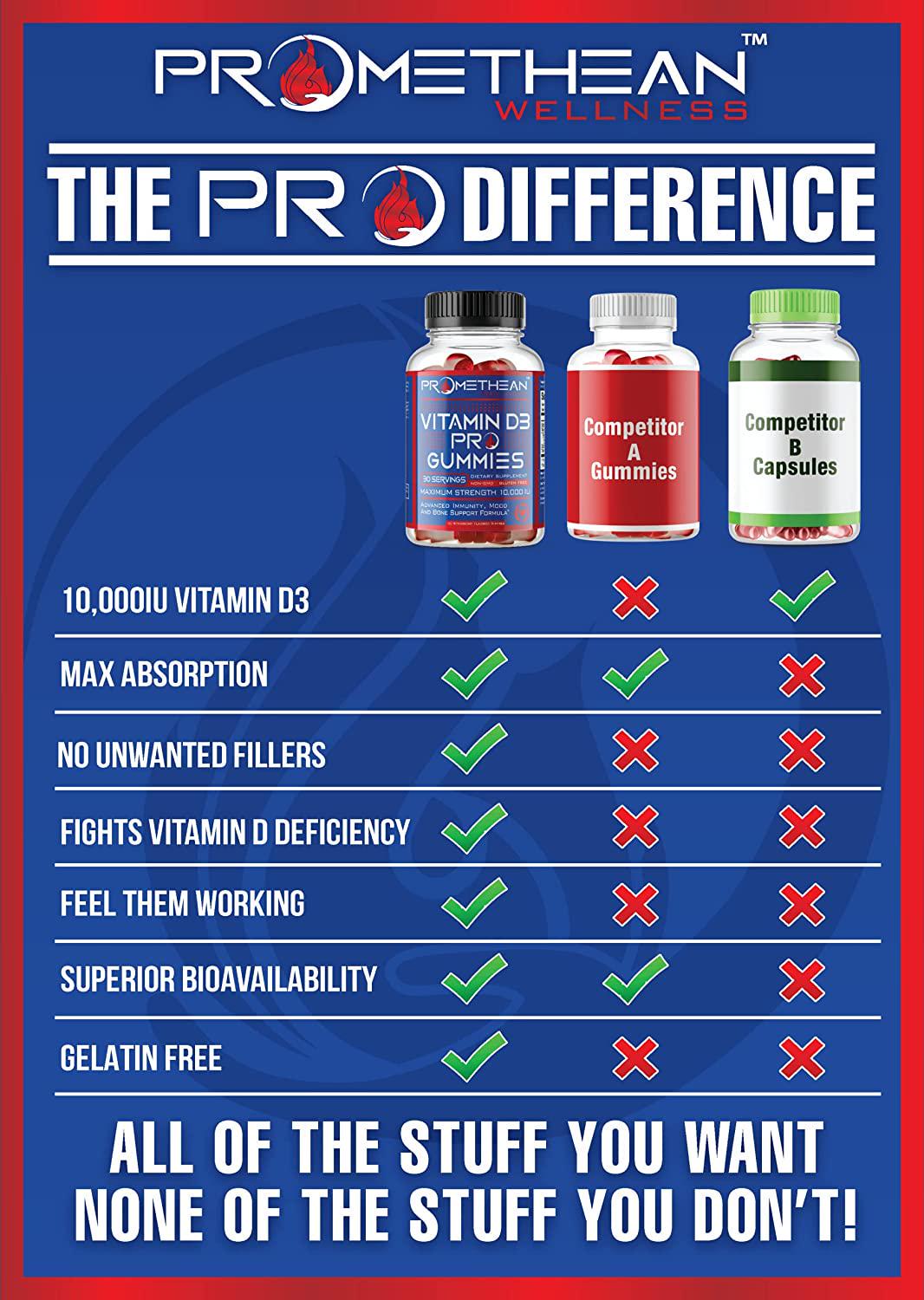 - Maximum Clinical Strength - Our 10,000IU "Pro" Vitamin D3 Gummies provide the maximum clinical strength of Vitamin D3 available in a highly absorbable and tasty chewable gummy. Vitamin D3 (cholecalciferol) is the most bioavailable form of Vitamin D, however it s fat soluble vs. water soluble. That's where our brilliant gummy delivery system made with vegetable oil comes in. With our formula you can trust you're getting the maximum absorption and bioavailability of this life-enhancing nutrient