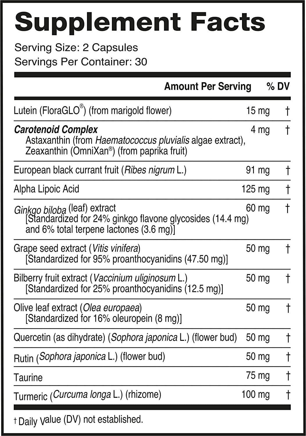 - Eye Health Supplements For Adults - Our eye antioxidant with lutein and Carotenoids (Zeaxanthin, Astanthin) provides balanced ocular support with Bilberry vitamins, Grapeseed extract, Alpha Lipioc Acid, european black currant, Turmeric and more.