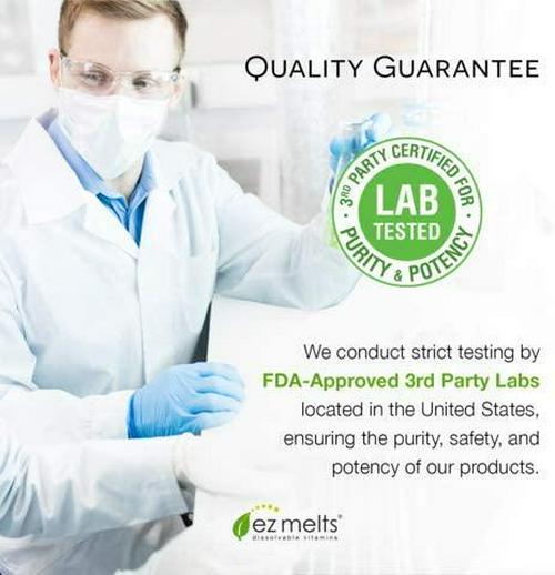 EZ Melts are a full line of fast melting dietary supplements that are specially formulated to melt in the mouth quickly without the need for water. They are perfect for those who dis swallowing pills or are prevented from doing so for medical or lifestyle reasons, or simply for those who want the benefits of quality, great tasting supplements. Advantages of EZ Melts: Tablets melt rapidly in the mouth with a smooth feel - no need for water or swallowing large pills. Active ingredients become readily available for absorption before entering the digestive tract. Great tasting formulas featuring popular ingredients across the spectrum of health categories. We uphold the highest standards of regulatory compliance to ensure that our products are manufactured with safety, integrity and in accordance with the current Good Manufacturing Practices (cGMPs). We are an FDA-registered, USDA-approved facility and have been audited by regulatory authorities.