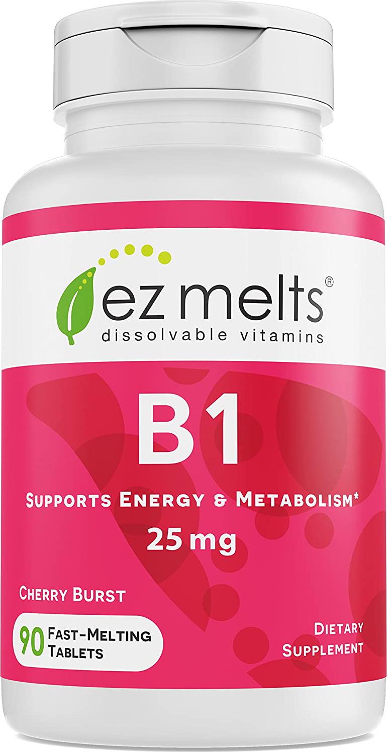 EZ Melts B1 as Thiamine, 25 mg, Sublingual Vitamins, Vegan, Zero Sugar, Natural Cherry Flavor, 90 Fast Dissolve Tablets