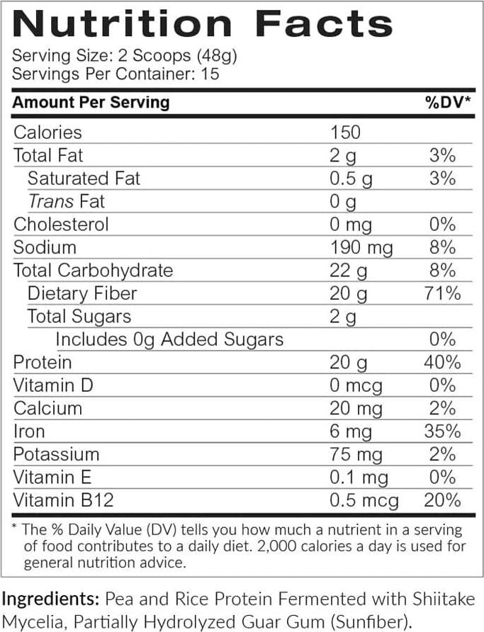 - 20g fiber, 20g protein, 3g net carbs, 150 calories