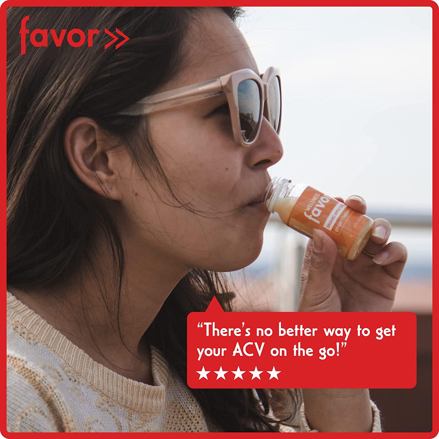 Favor Apple Cider Vinegar Wellness Shot with Ginger, Lemon and Cayenne - Organic Drink for Immunity Boost, Digestion and Gut Health - Pack of 12 (2 fl oz Each)