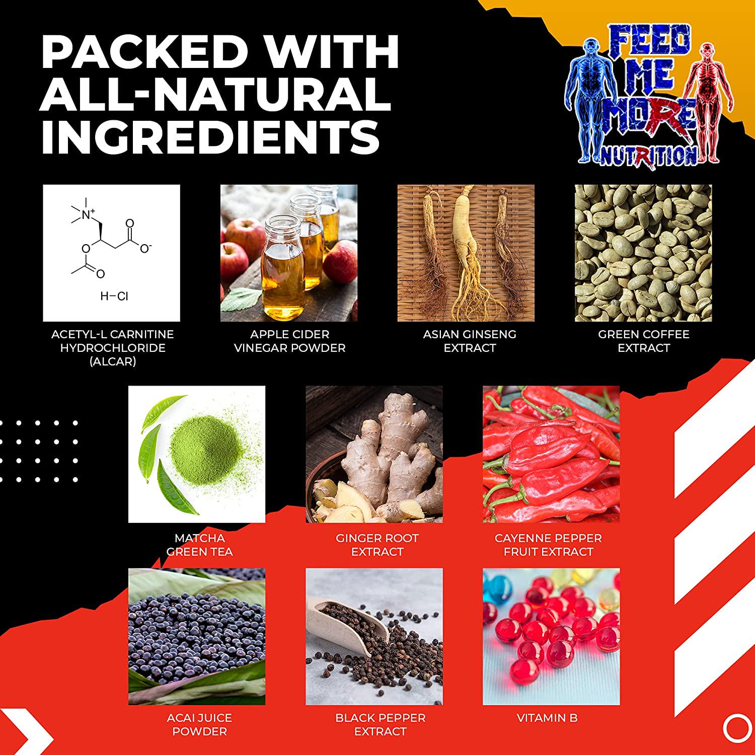 - ORGANIC INGREDIENTS: Includes apple cider vinegar, matcha green tea, green coffee, l carnitine, Asian ginseng, acai powder, cayenne pepper, black pepper extract and more.