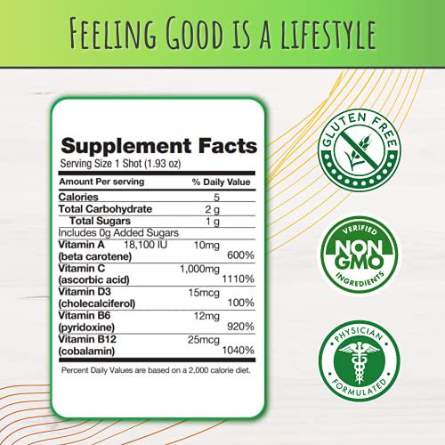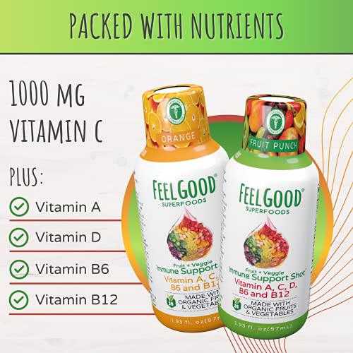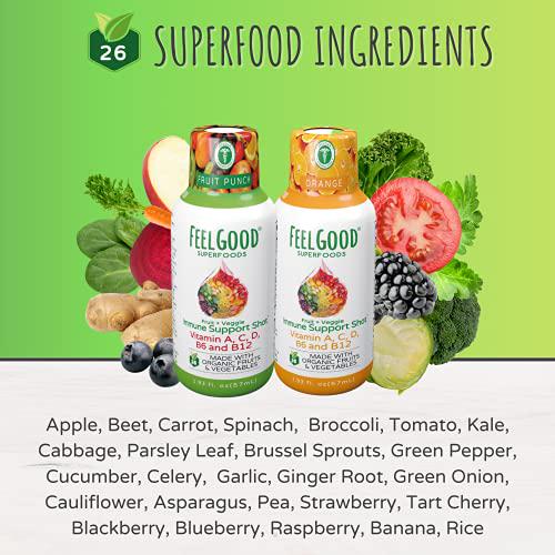 FeelGood Superfoods Immune Support Shot Supplements, 26 Organic Fruits and Veggies, Ready to Drink Immunity Booster, Orange and Fruit Punch Flavor, Combo Pack of 20
