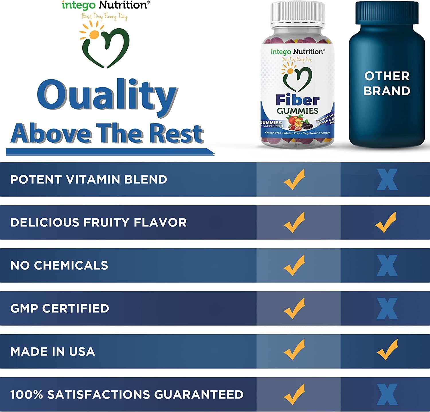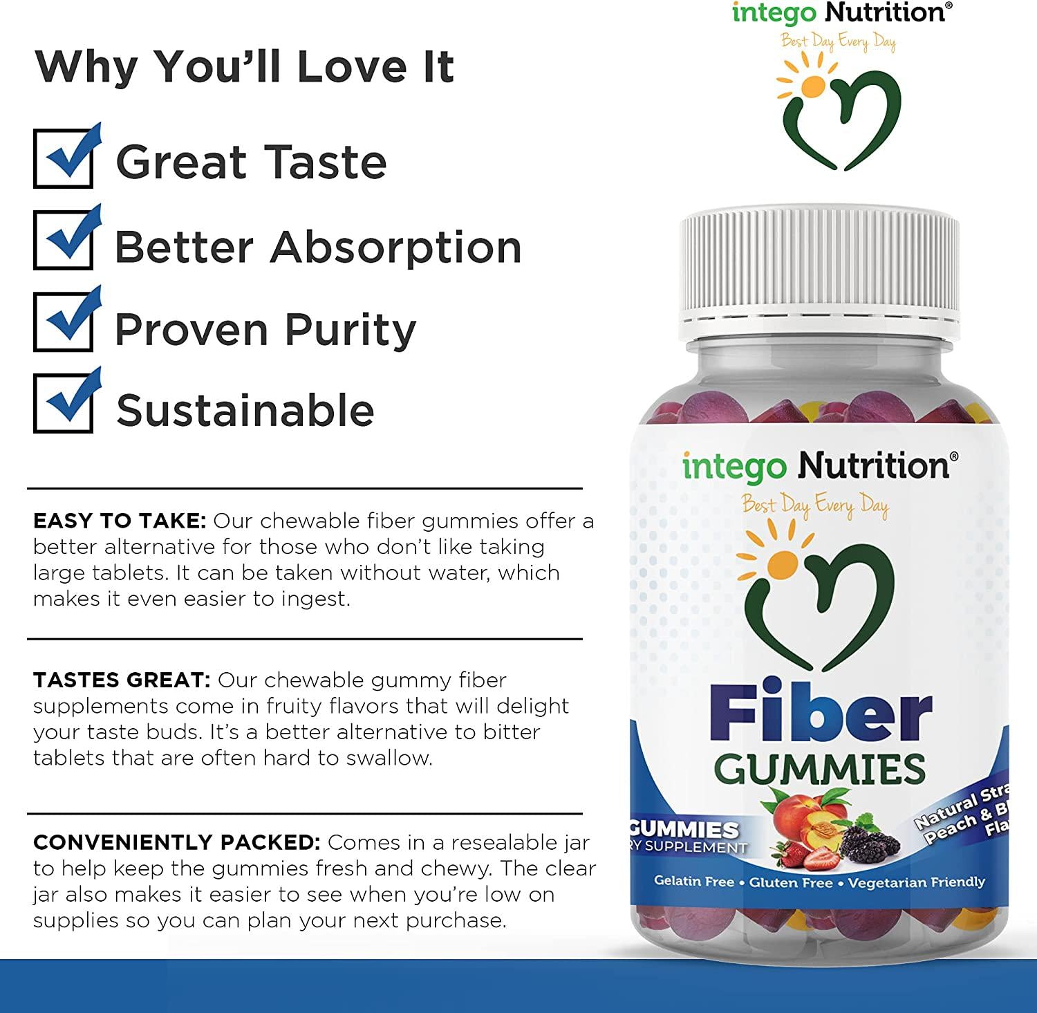 Intego Nutrition Gummies Supplement (60 Count) for Women, Men & Kids | Soft Chew Gummy Supplements | Vegetarian, Non-GMO, Gluten-Free & Made in The USA (Fiber Mix)