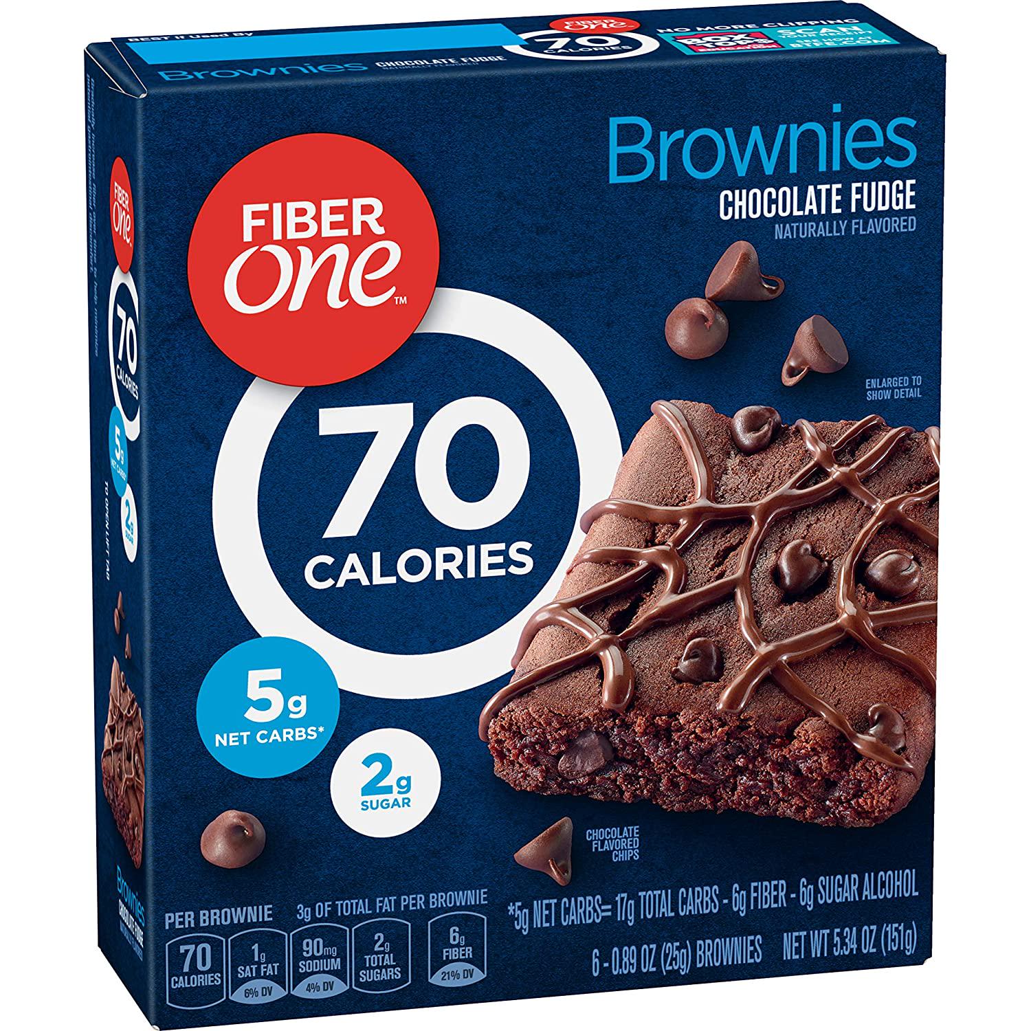 New recipe! Don't compromise on great taste. Fiber One Chocolate Fudge Brownies have 70 calories, 5 net carbs and 2 grams of sugar.