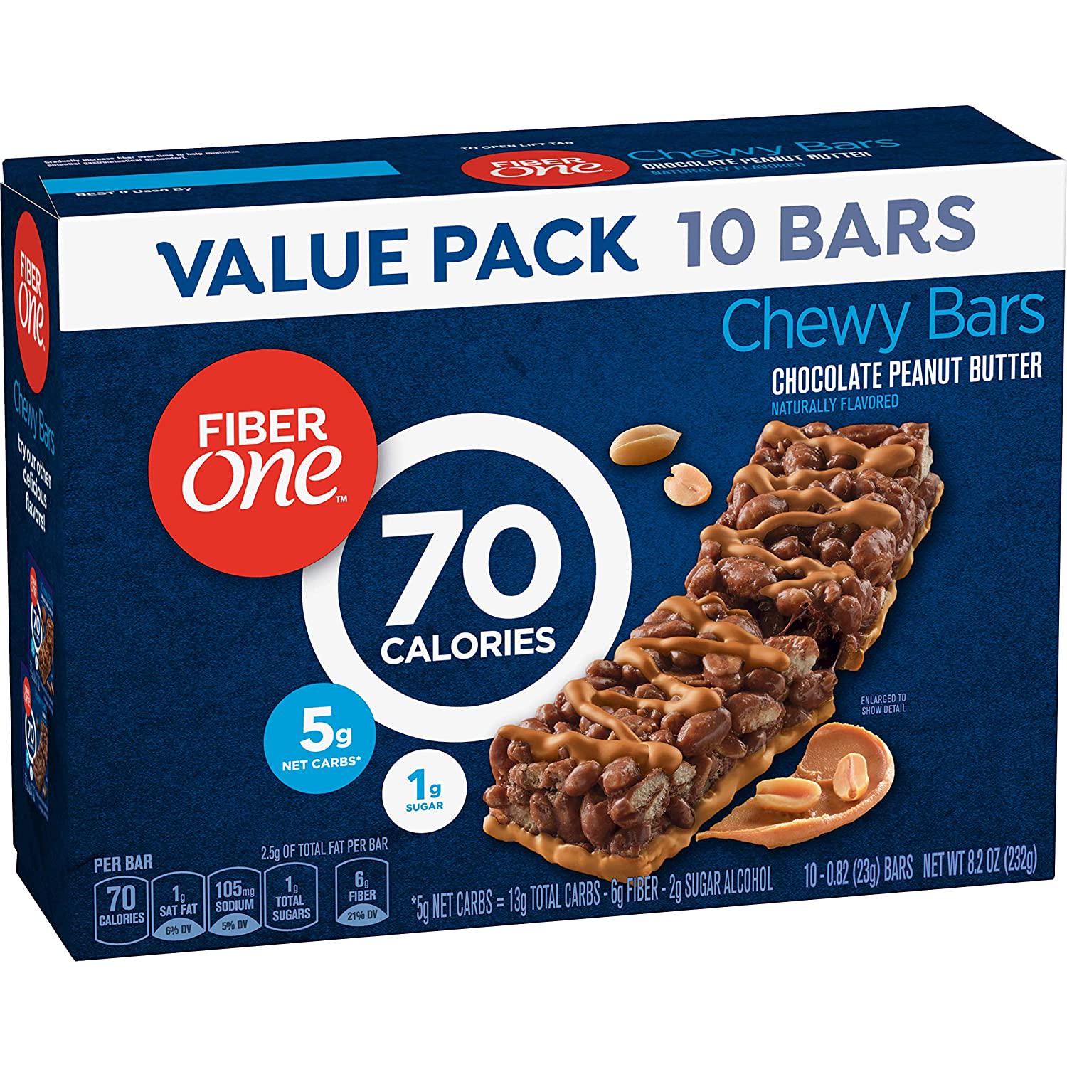 Fiber One 70 Calorie Chocolate Peanut Butter Bars, Snack, 10ct.