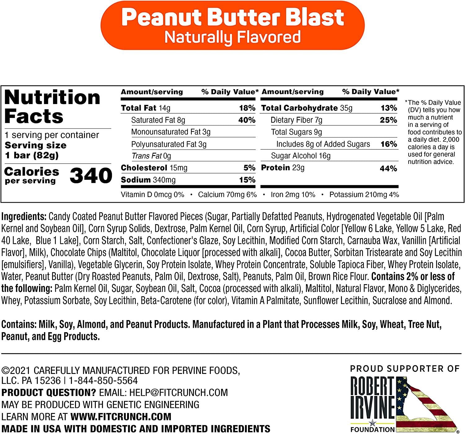 fitcrunch loaded cookie protein bar, gluten free, peanut butter blast, usa