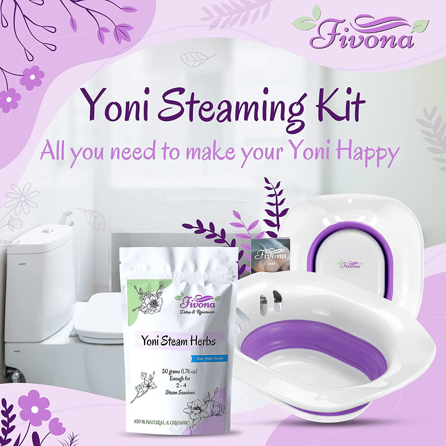 Fivona Yoni Steam Kit Over The Toilet Seat with Steaming Herbs Blue Moon Recipe for Detox, Cleansing, PH Balance and Odor Control Fivona Yoni Steam Kit Over The Toilet Seat with Steaming Herbs Blue Moon Recipe for Detox, Cleansing, PH Balance and Odor Control