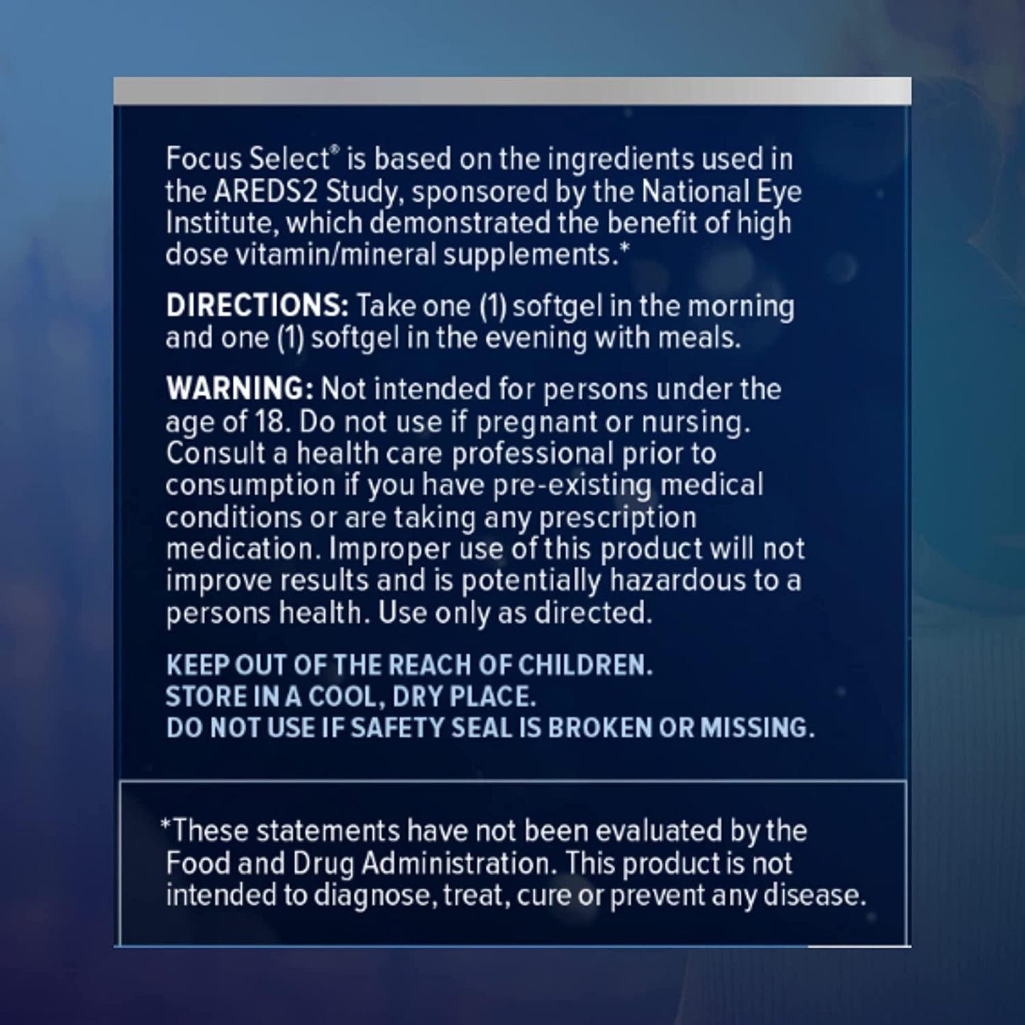 - DEVELOPED AND RECOMMENDED BY EYE DOCTORS: The Focus Select AREDS2 based formula for macular health has been developed by eye doctors and formulated with nutrients proven to be beneficial in the AREDS2 study.