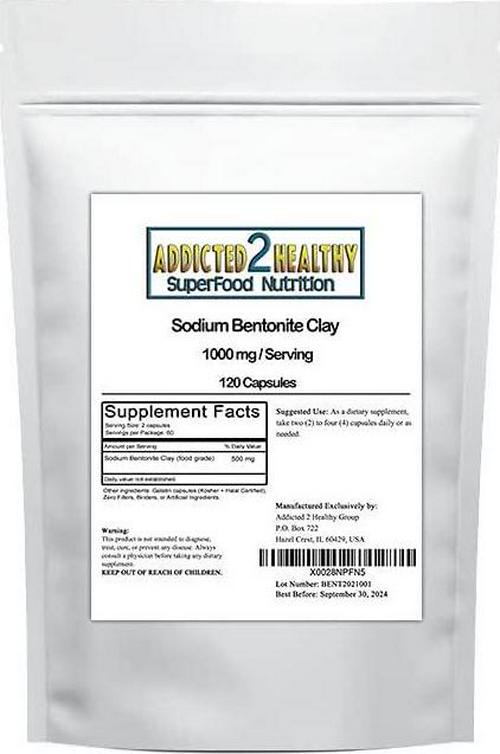 Food Grade Sodium Bentonite Clay Powder Capsules (1000 mg) 120 Count by Addicted 2 Healthy