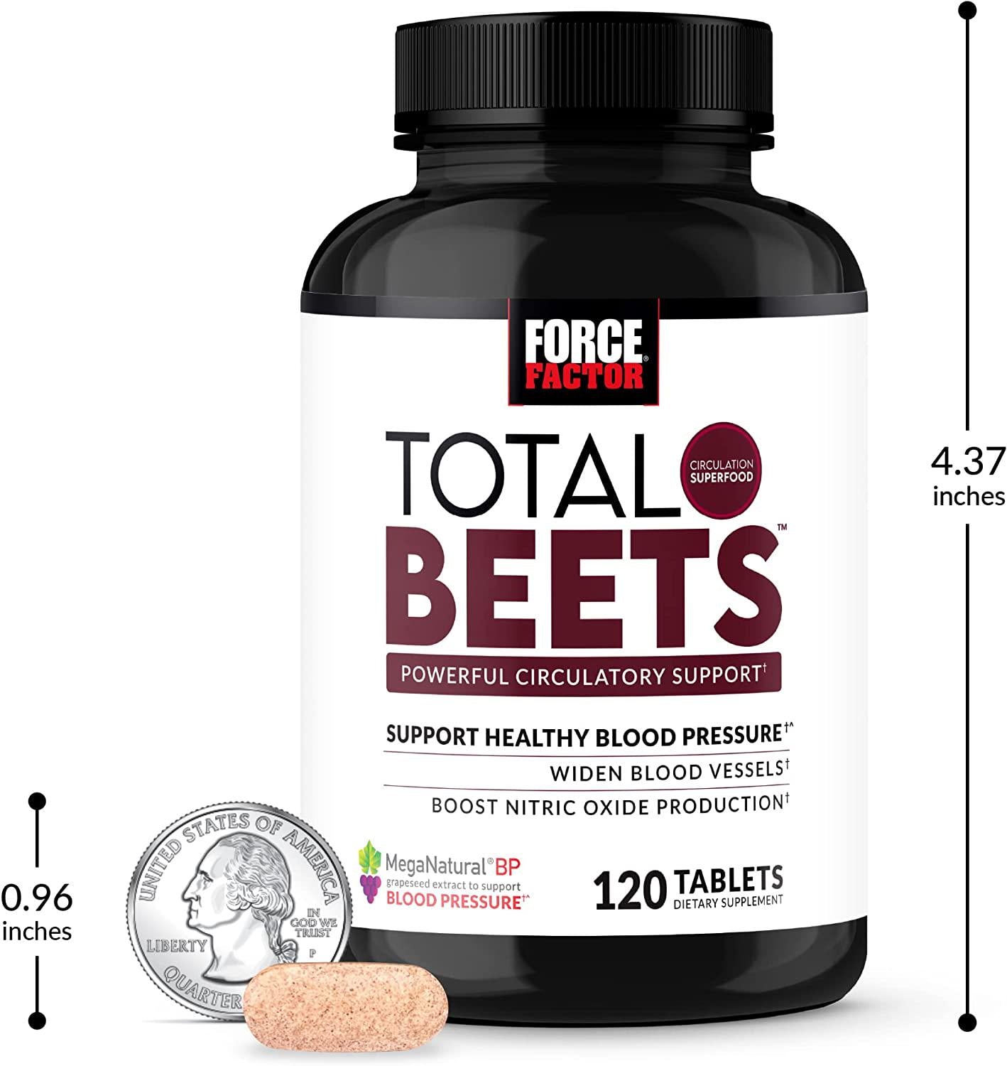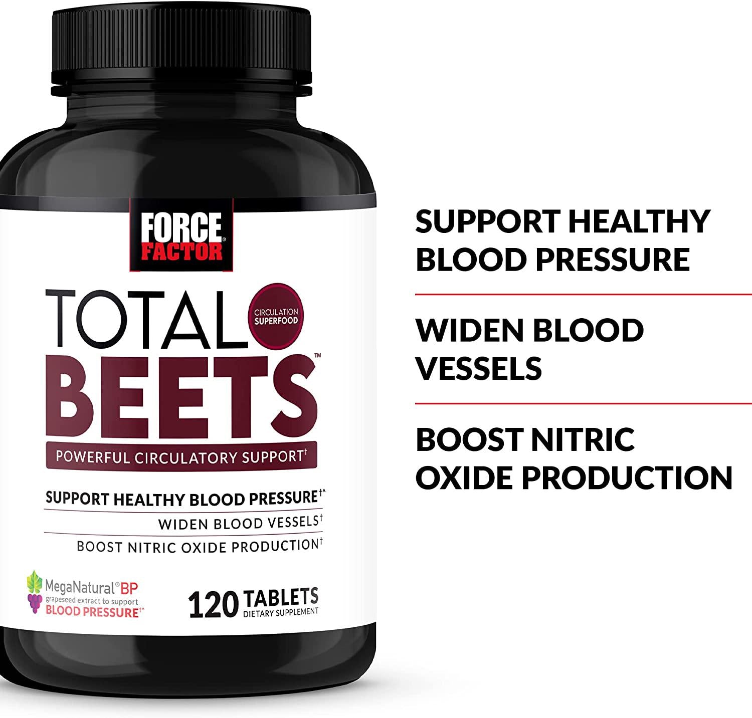 Force Factor Total Beets Blood Pressure Support Supplement with Nitrates and Grapeseed Extract to Boost Nitric Oxide, Circulatory and Cardiovascular Vasodilator Heart Health Vitamins, 120 Count