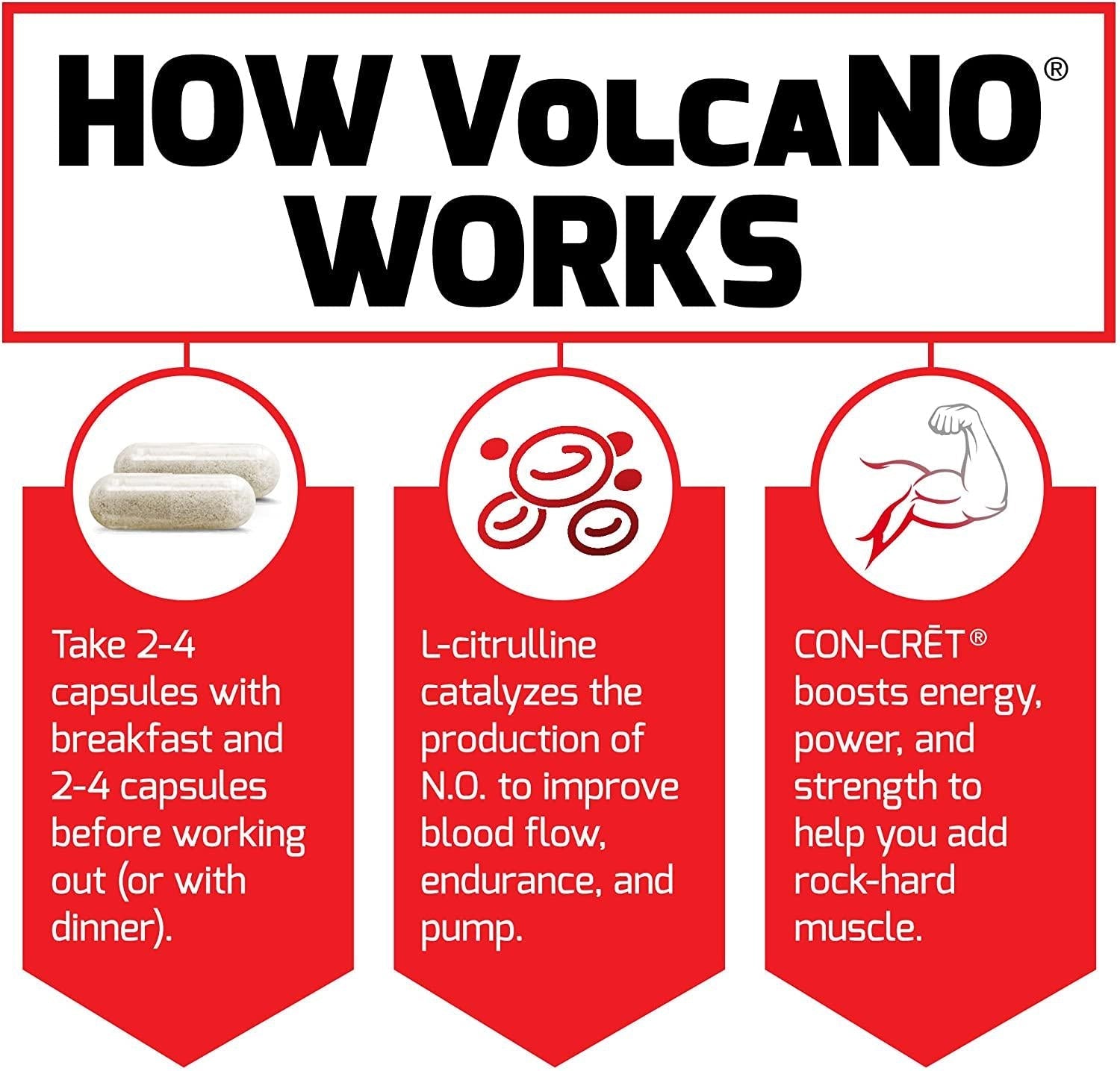 - Build Muscle & Strength: volcano is a nitric oxide booster that delivers more strength, more lean muscle, and more vascularity. It's a fast, efficient way to boost nitric oxide and increase muscle mass through science, not sweat.