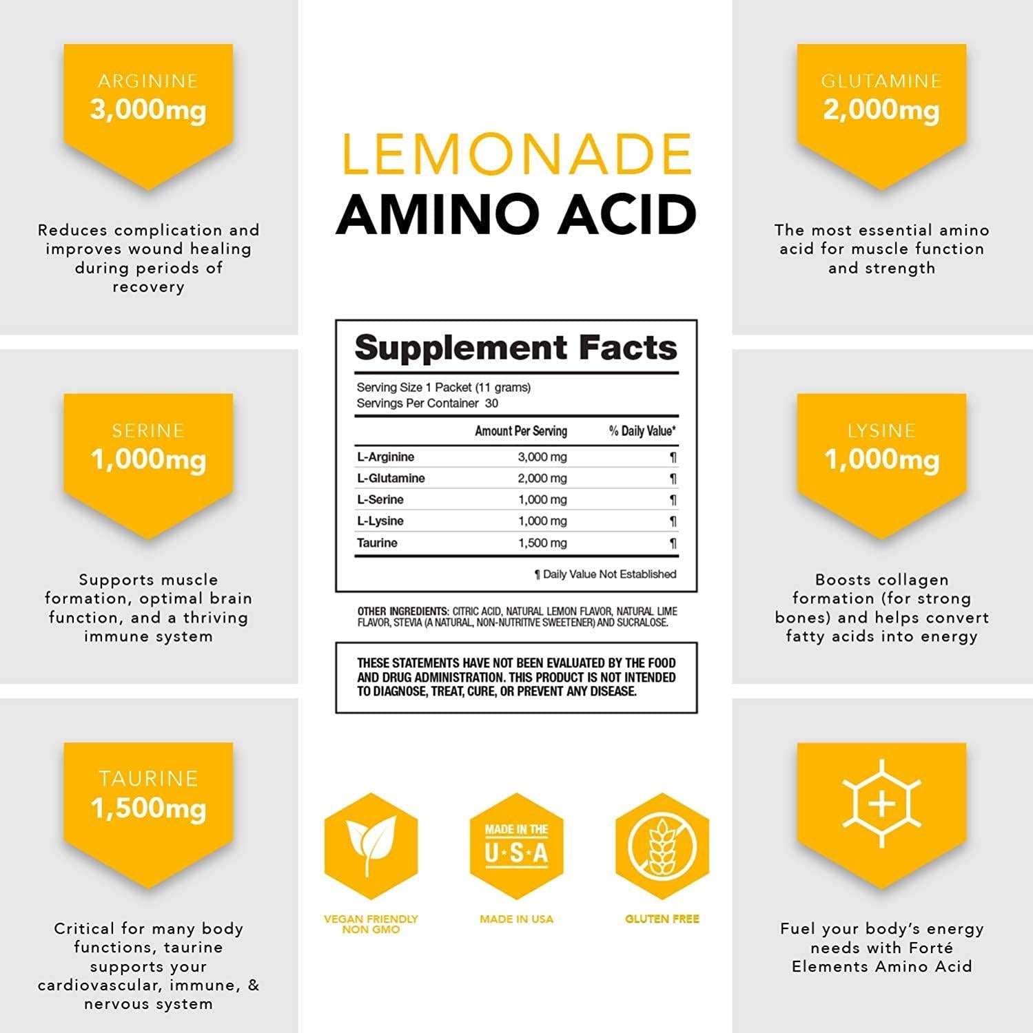 Forte Amino Acid Supplement Powder Physician Formulated Blend of Glutamine, Arginine, Lysine, Taurine and Serine Supports Intense Exercise and Trauma Recovery (Lemonade Flavor 30 Servings)