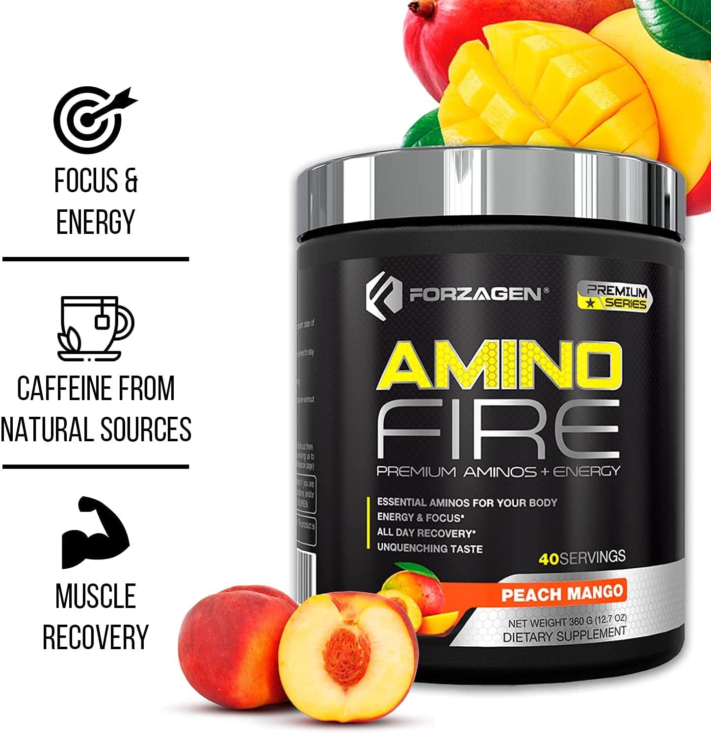 Forzagen Amino Energy + BCAA Amino Acids - Energy | Focus | Endurance | Reaction | 40 Servings of Amazing Flavors | Amino Fire (Peach Mango)