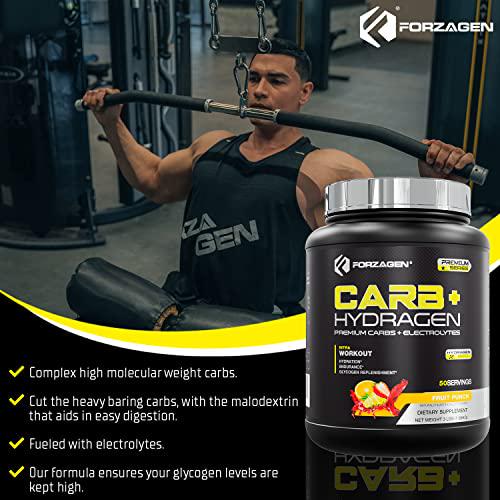 Forzagen Carbs Powder with Hydragen, 50 Servings, Hydration, Endurance, Electrolytes 3lbs (Fruit Punch)