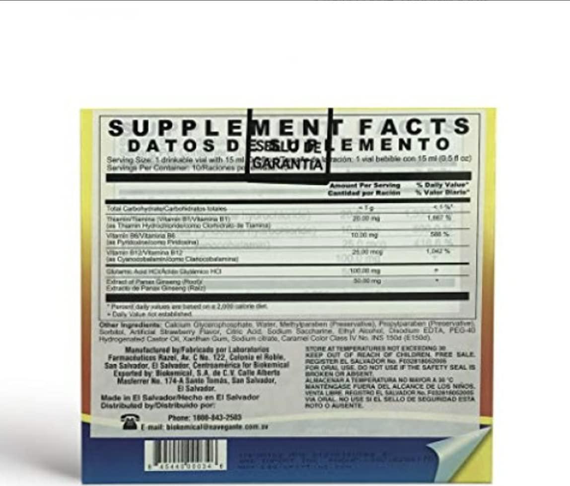 - * NATURAL INGREDIENTS: The ginseng extract vials are rich in vitamins B1, B6, and B12 that can give you a great energy boost and revitalize your body. The glutamic acid HCI is a great amino acid that, together with the Ginseng extract, can support your body's proper functioning.