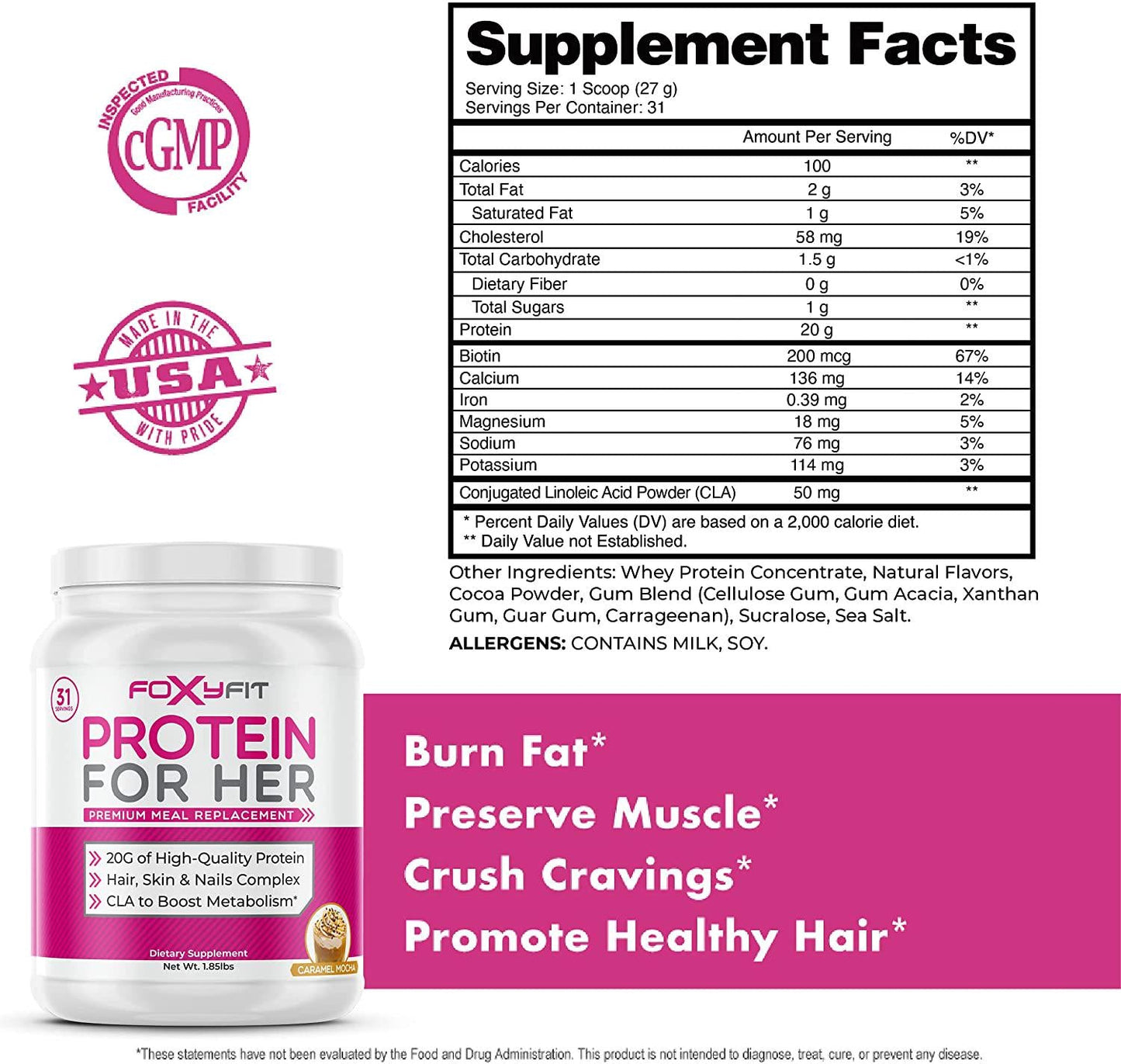 - Made in the USA: All Foxy Fit premium supplements are made in the USA at our cGMP facility. Our protein powder for women, as well as our other products are formulated in a safe environment.*