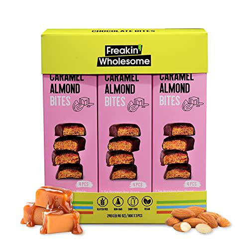 Freakin' Wholesome Chocolate Covered Caramel Almond Bites, High protein snacks 2.82 Ounces per box. (Pack of 3). Vegan Gluten Free