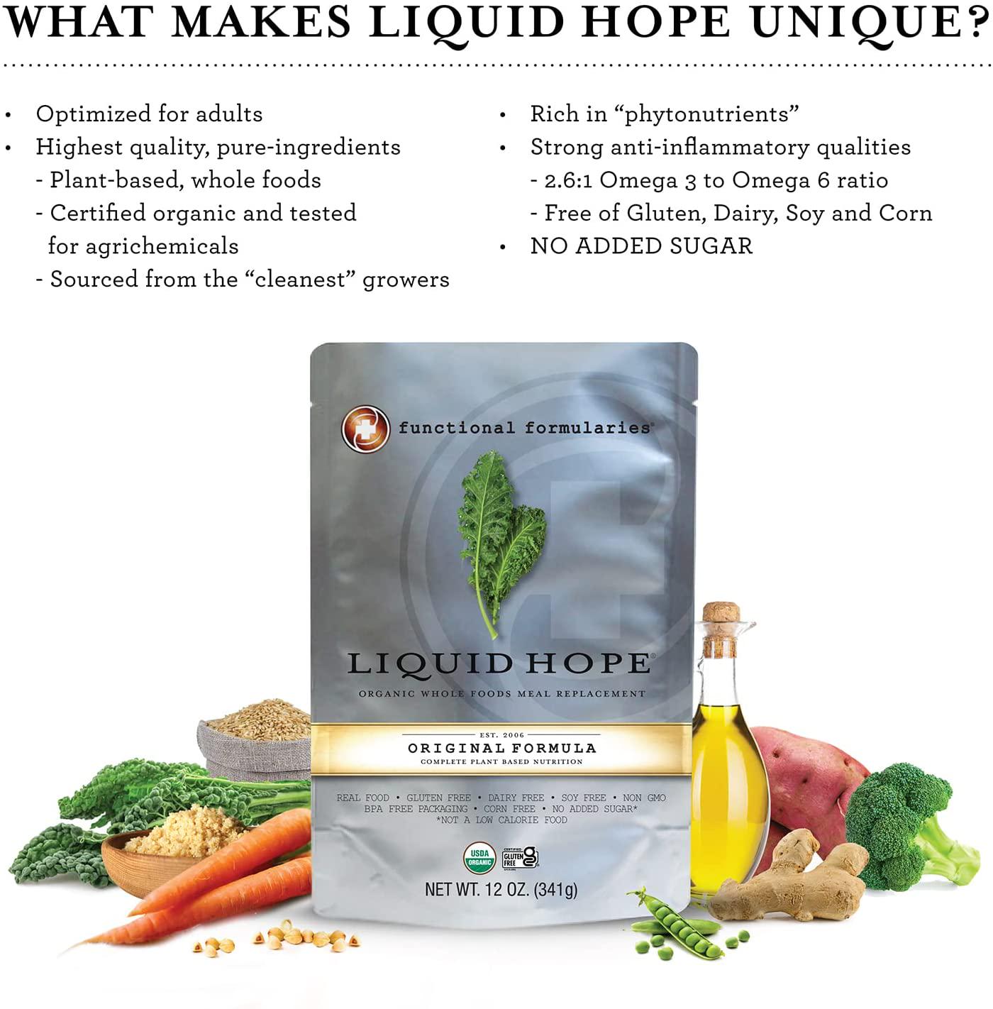 Functional Formularies Liquid Hope Organic Tube Feeding Formula And Nutritional Meal Replacement Supplement, 12 Oz Pouch, Single