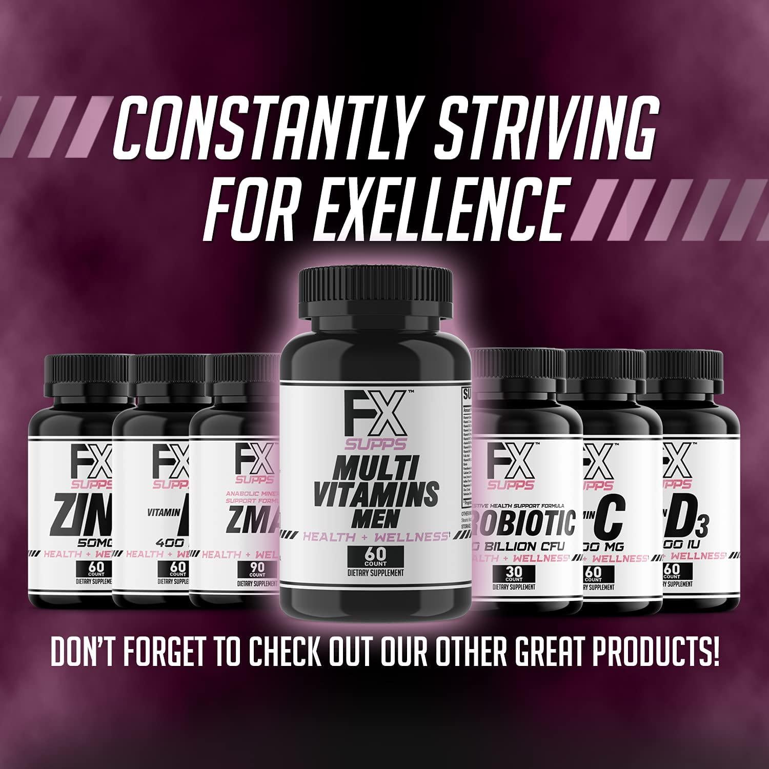 - VITAL NUTRIENTS FOR MEN: FX Supps Multivitamin for Men is a thoughtfully crafted combination of all-natural vitamins, minerals, and other potent nutrients designed to boost men’s health.