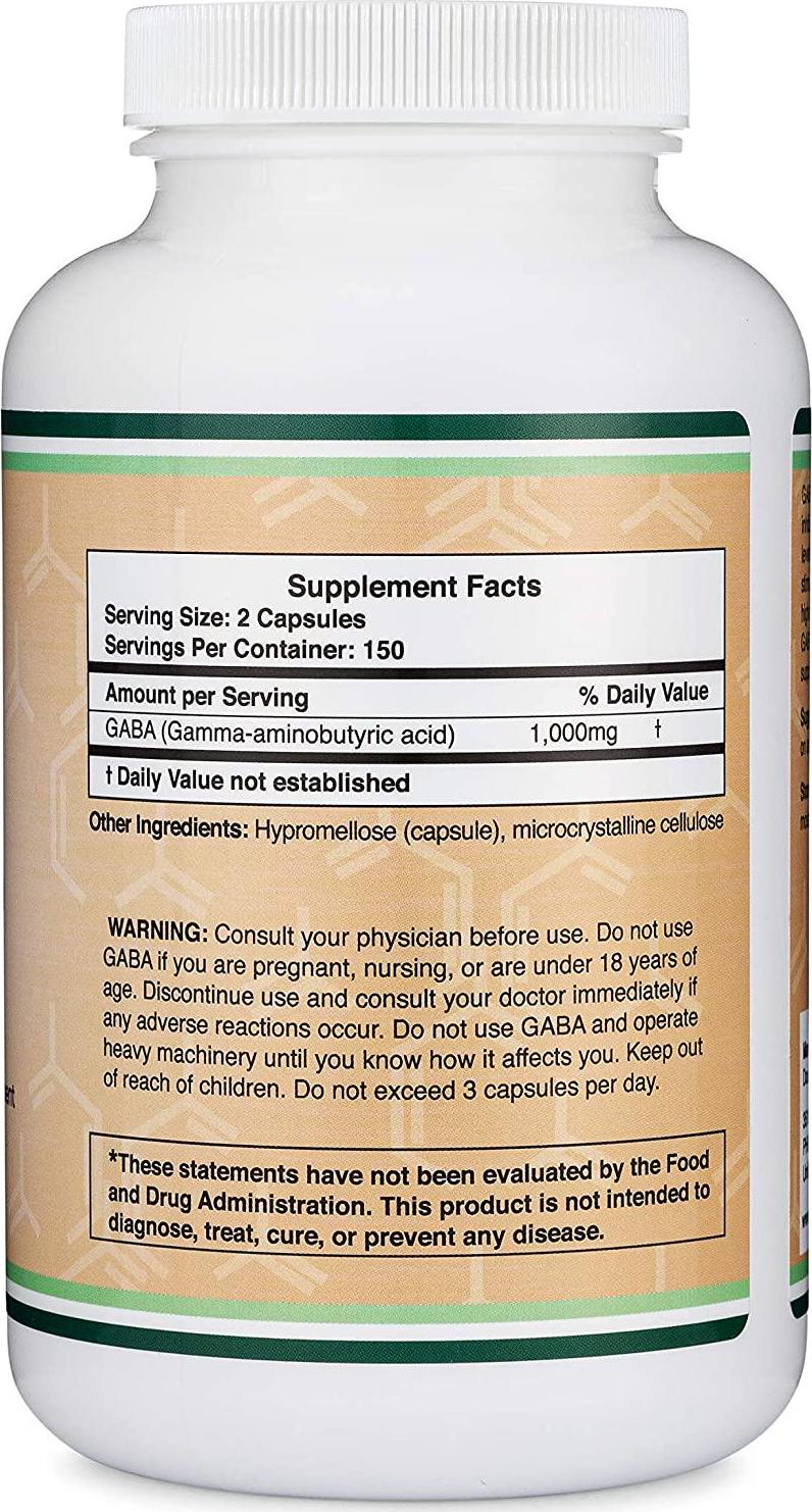 - 150 DAY SUPPLY - Each bottle contains 300 capsules of GABA (150 servings of 1,000mg)