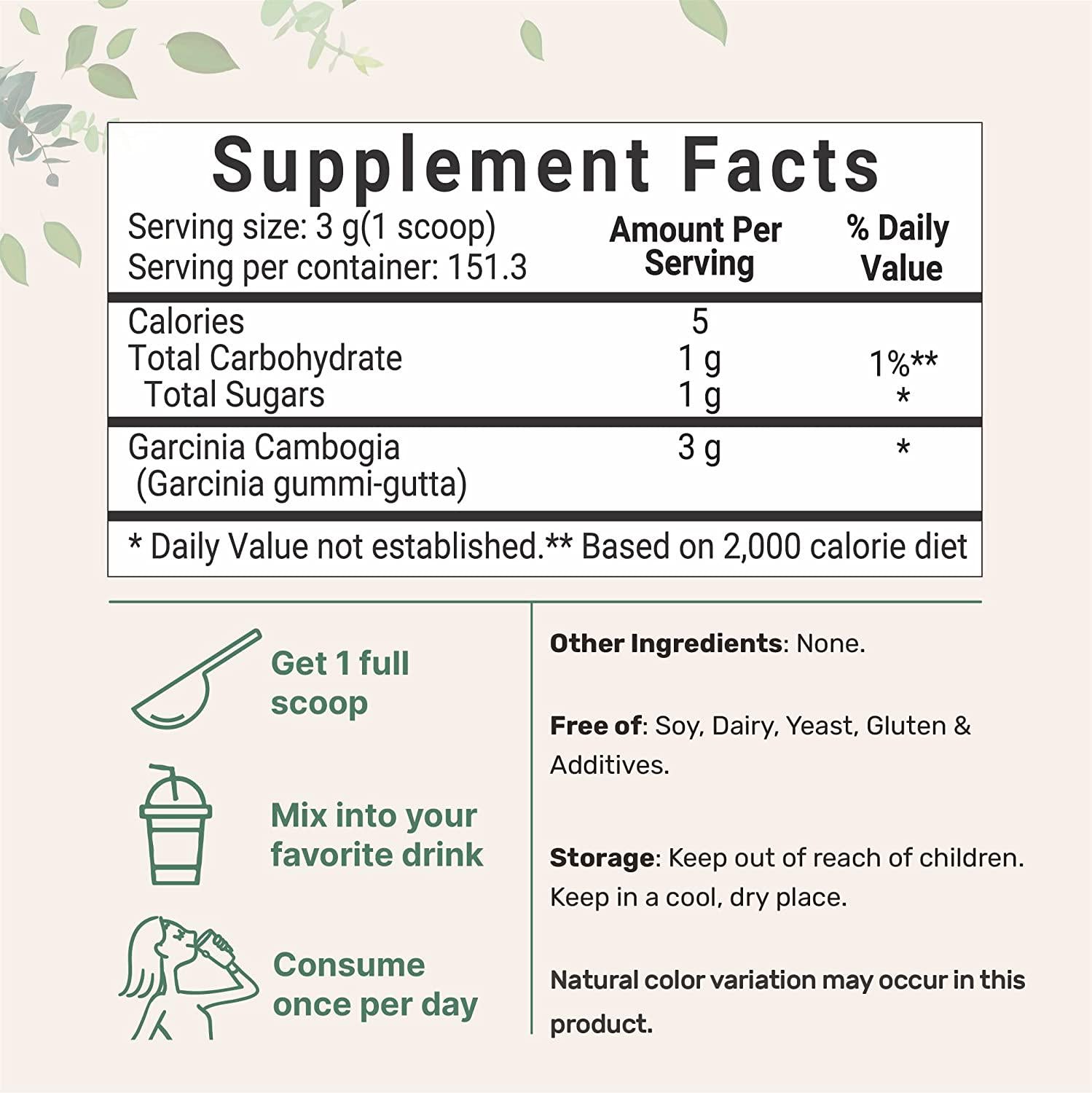 - Pure Garcinia Cambogia Extract Powder, with 60% HCA, 1 Pound (5 Months Supply), Filler Free, Concentration and Vegan Friendly.