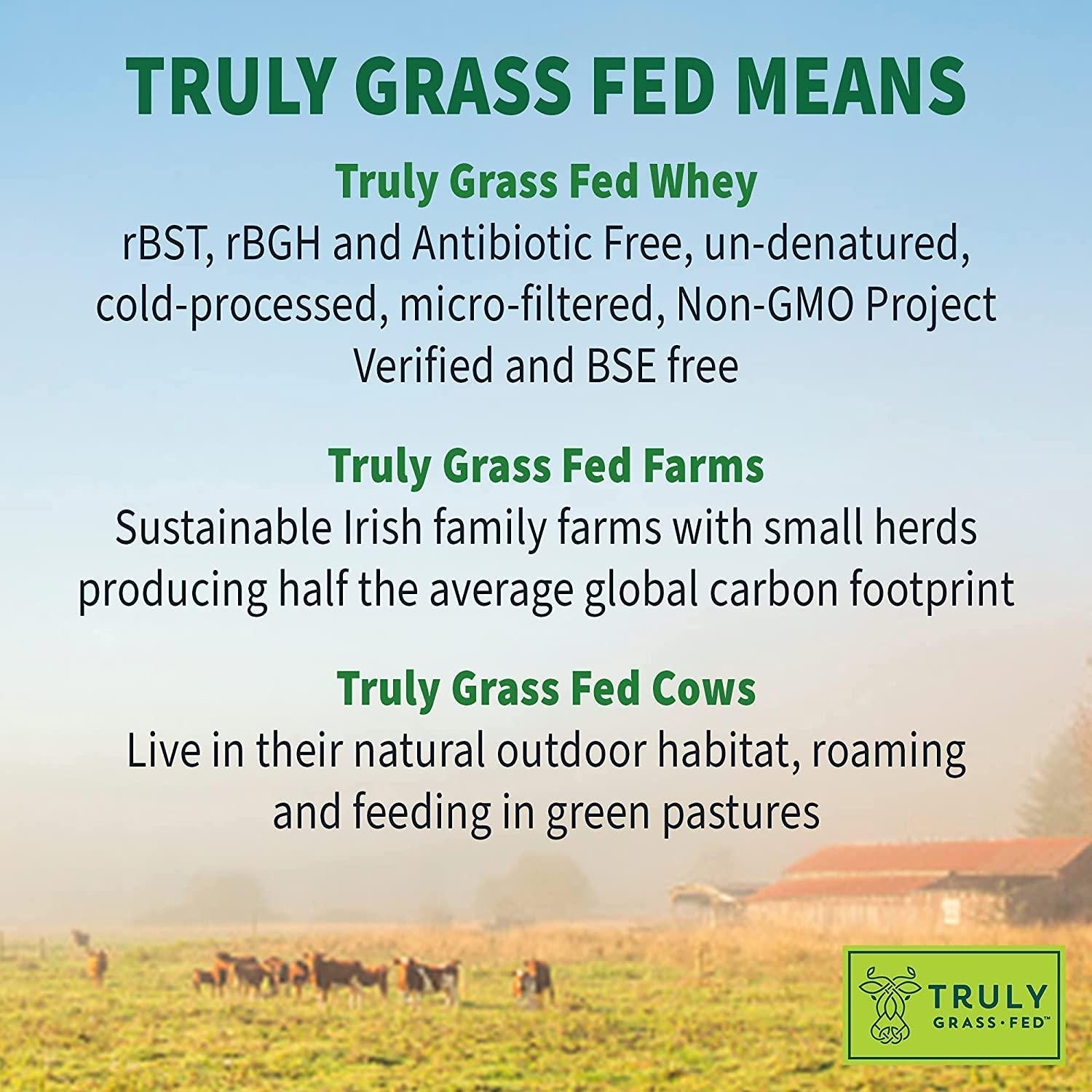- CLEAN WHEY PROTEIN: Truly Grass Fed Certified, Non GMO Project Verified, Gluten free, Soy free, NSF Certified for Sport and Informed Choice for Sport Certified, with No added hormones, No antibiotics, No added sugars