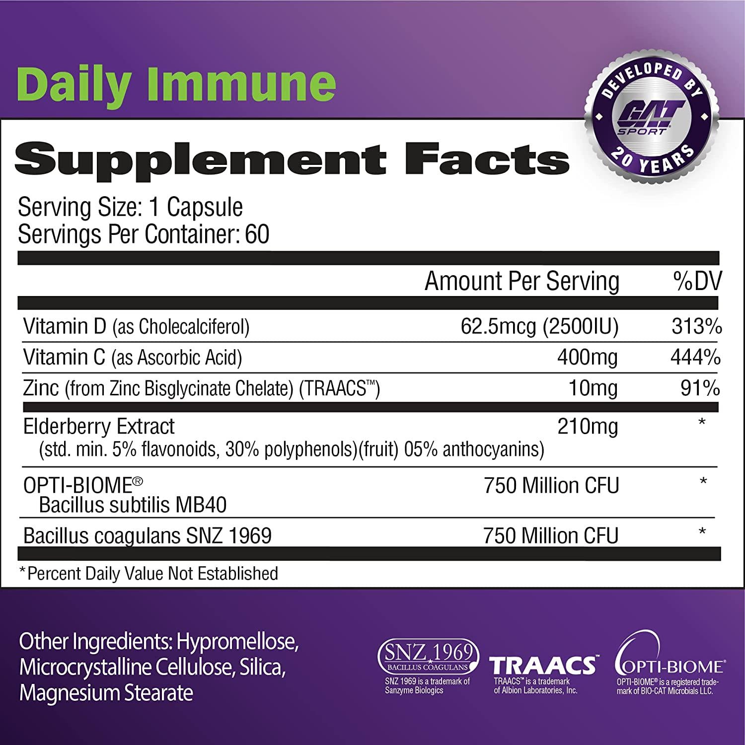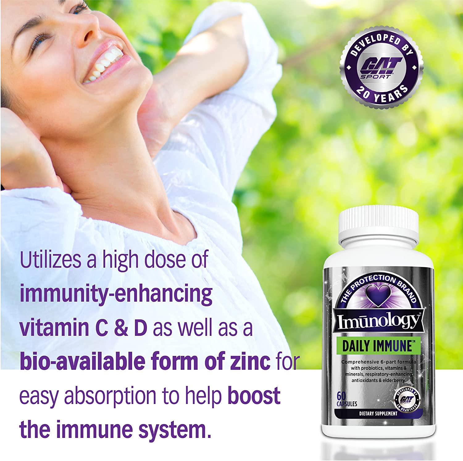GAT Sport Daily Immune - Natural Healthy Immune Support with Elderberry, Zinc and Probiotics, 60 Capsules
