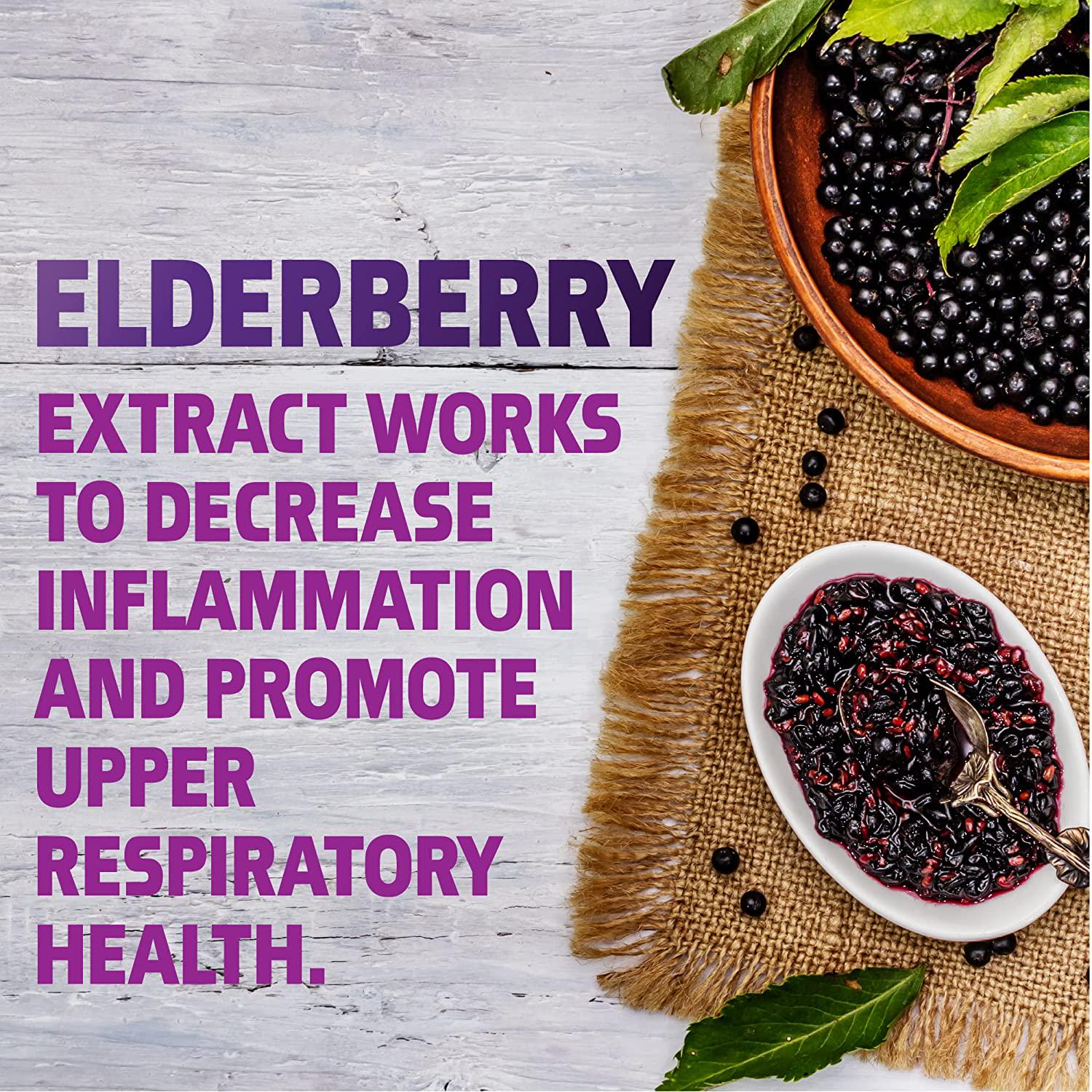 - ELDERBERRY EXTRACT - Works to potentially decrease inflammation and can help to support healthy respiratory function