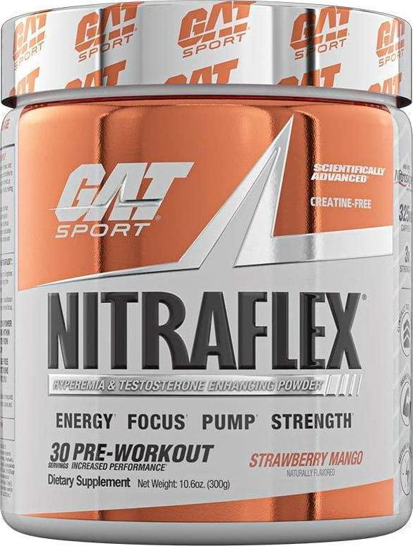 GAT Sport, NITRAFLEX Testosterone Boosting Powder, Increases Blood Flow, Boosts Strength and Energy, Improves Exercise Performance, Creatine-Free (30 Servings) (Strawberry Mango)