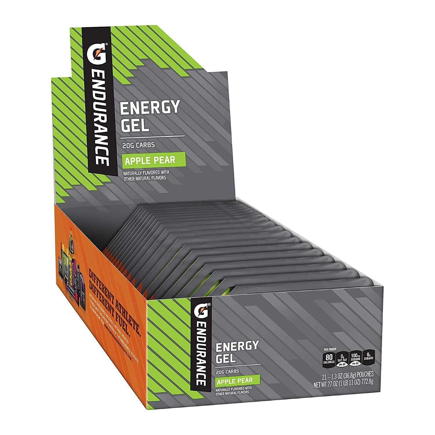 21 pack, apple pear, carb energy, endurance activities, endurance athletes, gatorade endurance energy gel, usa