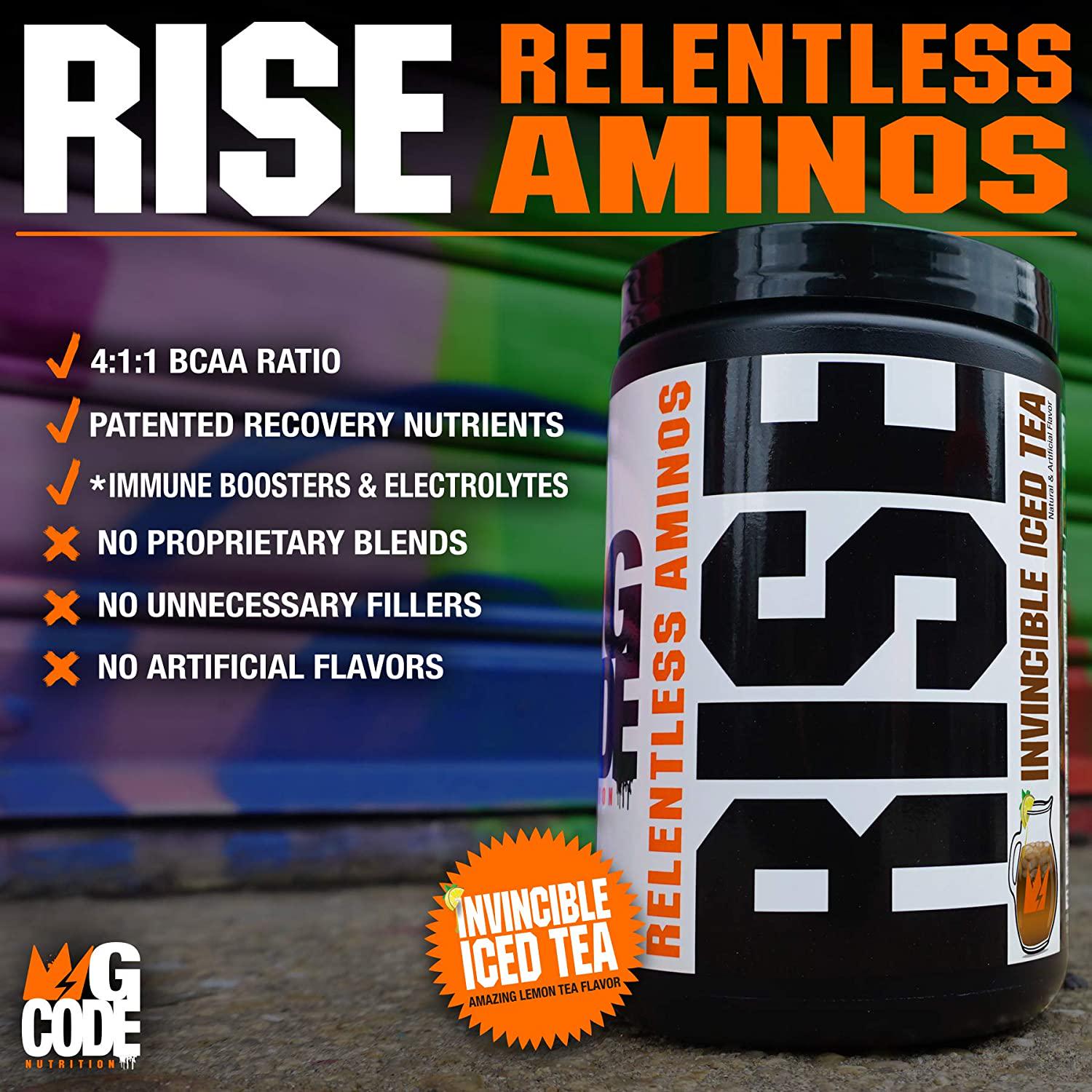 GCode Rise Relentless Aminos (Invincible Iced Tea) Recovery Elixir for Muscle Recovery, Electrolytes and Hydration- 30 Servings