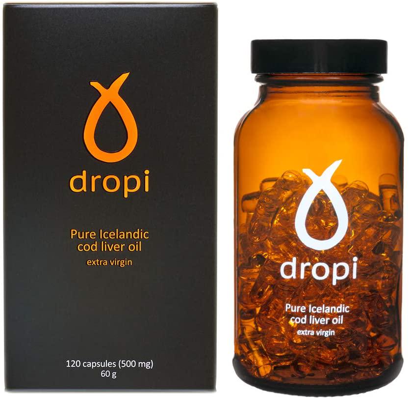 - HEART HEALTH, JOINT, SKIN AND BRAIN Taking a quality cod liver oil Dropi every day has many health benefits and may reduce joint pain, heart disease risk and inflammation. It may provide strong support to the immune system due to natural vitamin A, D and Omega 3, including EPA and DHA. All vitamins and Omega are preserved during manufacturing. Daily serving of 4 capsules gives 140 mg EPA and 180 mg DHA.