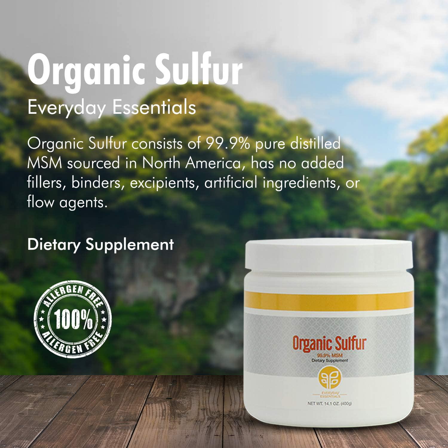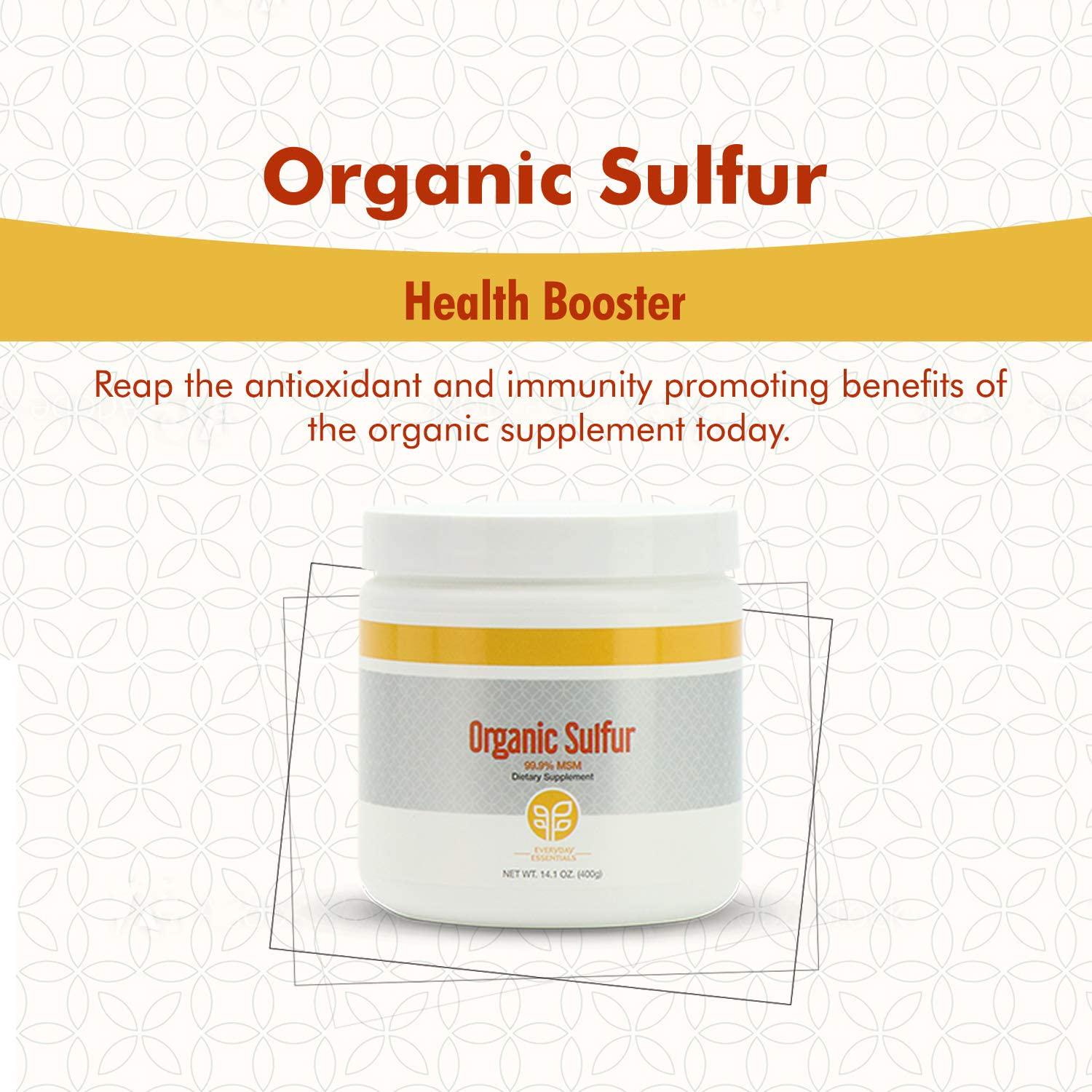 - Non-GMO, vegan, and gluten free. Organic Sulfur is an ideal supplement to add to your daily regimen.