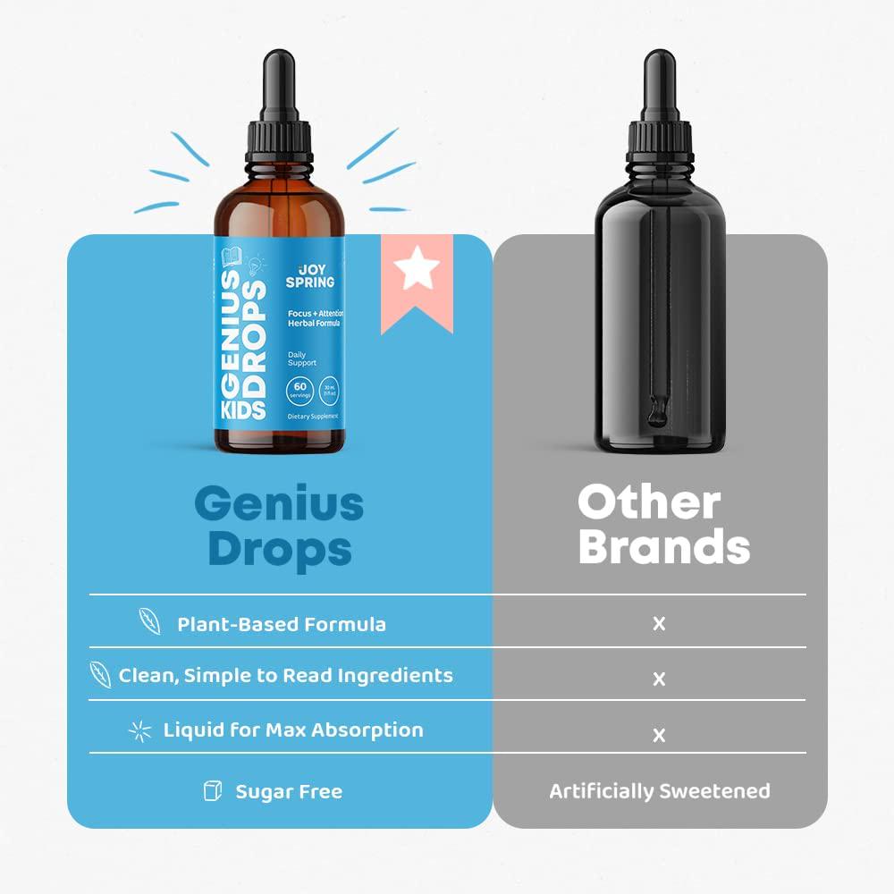 Genius Drops Focus Supplement for Kids, Supports Healthy Brain Function to Improve Concentration and Attention for School, Natural Calming Supplement, 2 oz