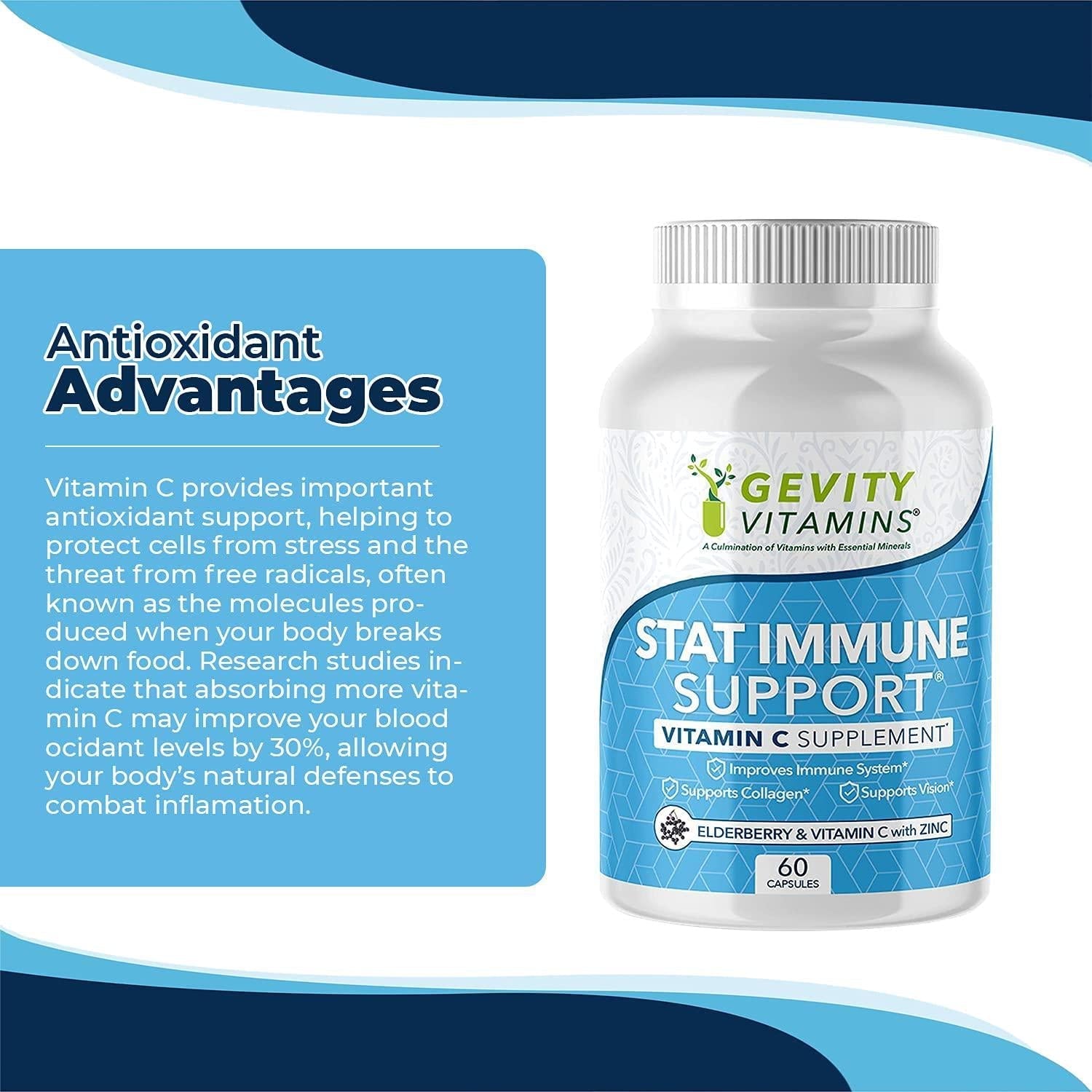 Gevity Vitamins Stat Immune Support - 60 Capsules - Vitamin C and Elderberry with Zinc Echinacea Supplement - Support Vision for Healthier Lifestyle - Gluten-Free Supplement