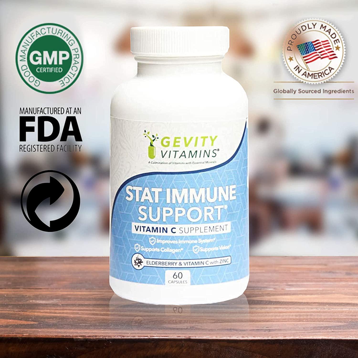 Research suggests that consuming foods, such as fruits and vegetables, are the best sources of vitamin C and support heart health.*Vitamin C acts as a potent antioxidant that promotes good health, and lowers the risk of certain conditions and also reduce stress.*Zinc, Elderberry, and Echinacea are also known for their healing properties.*Improve iron absorption both in adults and kids.GEVITY VITAMINS- STAT SUPPORT supplements-2 capsules can fulfill your daily need of the essential vitamins and nutrients your body may need to stay strong and healthy. This premium quality supplement is Non-GMO, Herbal Ingredients, DAIRY-FREE, GLUTEN-FREE and GELATIN-FREE> NO SOY, NUTS, COLOR ADDITIVES, OR ARTIFICIAL FLAVORS.Women who are pregnant should consult their doctor before taking vitamin and mineral supplements. Keep out of reach of children. *The FDA has not evaluated this claim. This product is not intended to diagnose, treat, cure, or prevent any disease.