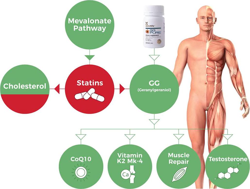 - COUNTERS SIDE EFFECTS OF STATINS - Muscle pain and deterioration as a side effect of statin use are largely due to the body being unable to carry out the Protein Prenylation. GG PURE may assist in mitigating these side effects.
