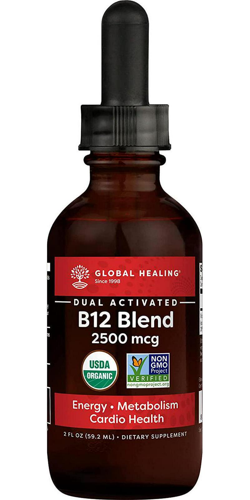 Global Healing Vitamin B12 Liquid Blend, 2500 mcg Organic Sublingual Supplement Drops | 2-in-1 Methylcobalamin and Adenosylcobalamin for Energy and Heart Health For Men and Women - 60-Day Supply, 2 Fl Oz